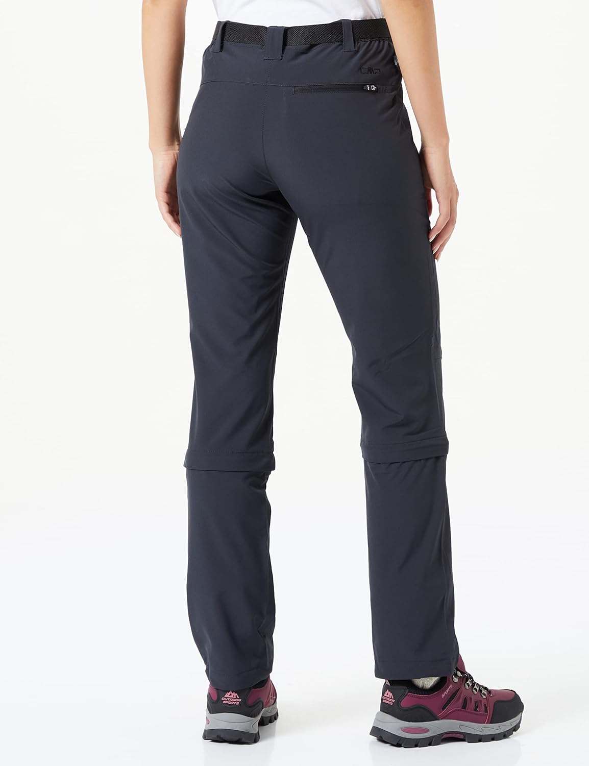 - Öffnung mit Reissverschluss und Knopf, Gürtelschlaufen an der Taille, integrierter verstellbarer Gürtel, zwei Seitentaschen mit Reissverschluss und eine auf der Rückseite, abzippbarer Reissverschluss unterhalb des Knies, CMP-Logo an der Seite und auf