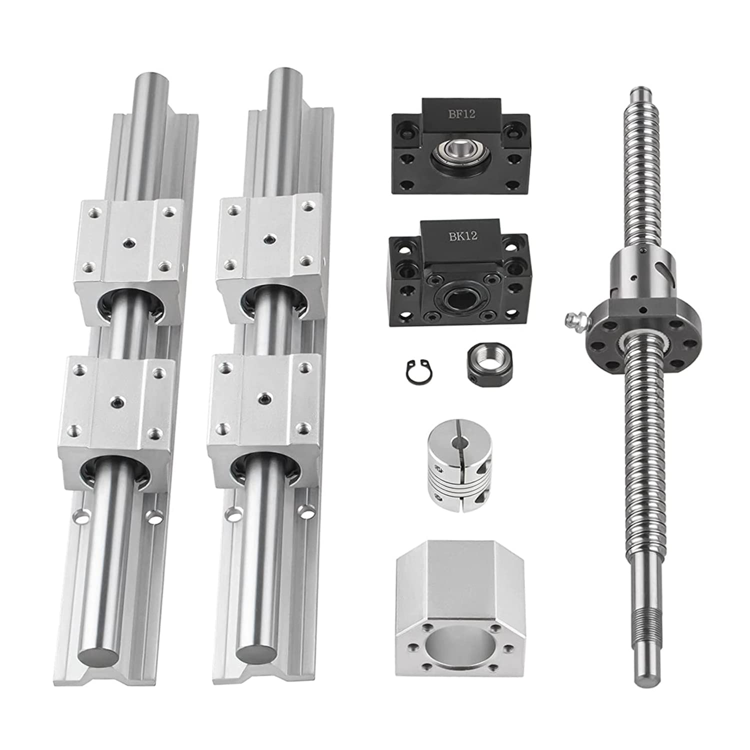 - Komplette Lineare Schienensätze: Dieses Linearführungset enthält 2 Stück SBR12-400mm Führungsschienen, 4 Blöcke, 1 Stück SFU/RM1204-400mm Kugelumlaufspindel, 1 Stück Kugelmutter, 1 Stück BF10/BK 10, 1 Stück DSG12H Muttergehäuse und 1 Stück