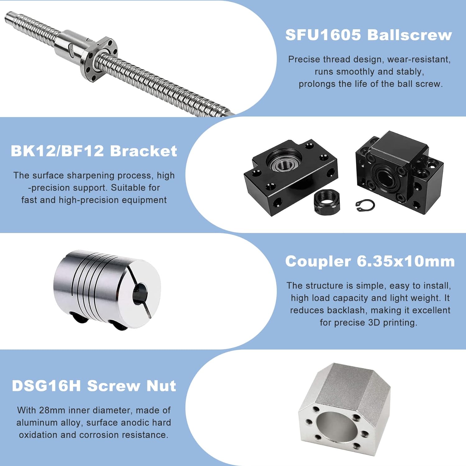CNCMANS Kugelumlaufspindel SFU1605 350mm Edelstahl Gerollte ballscrew mit BK12 / BF12 Endunterstützu
