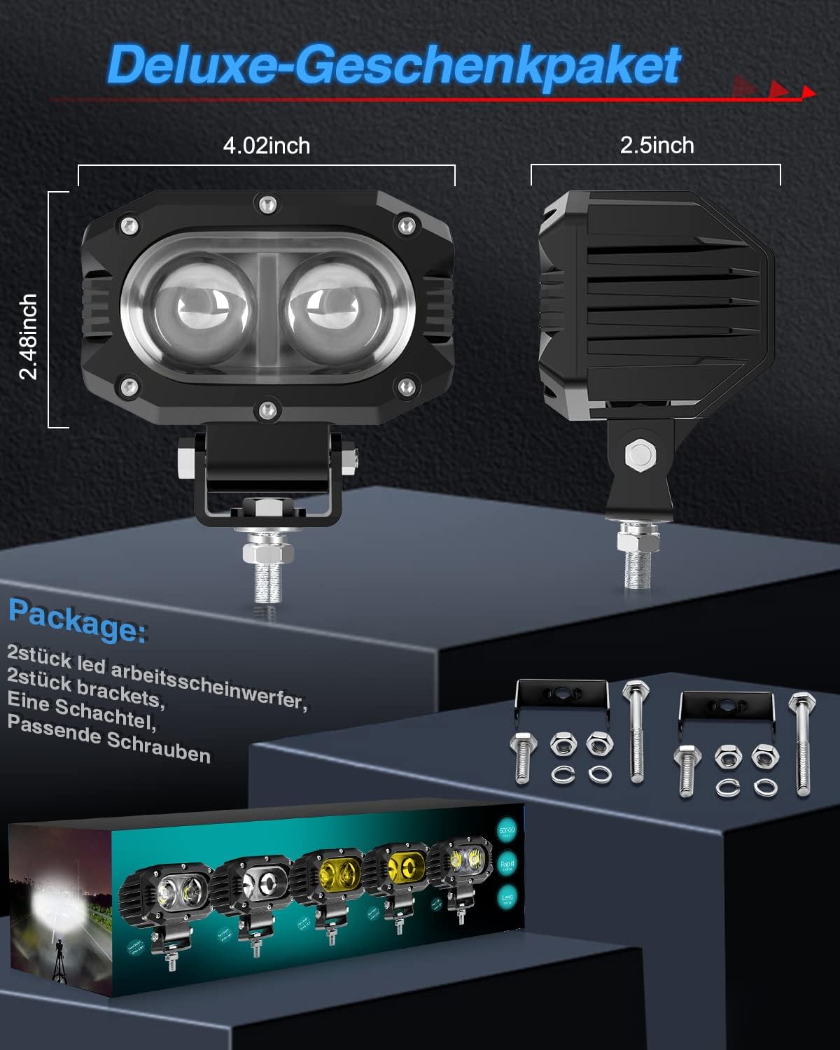 - 【Mini, aber super hell】 2 Stück 4 Zoll Arbeitsscheinwerfer verfügen über einen 48W Hochleistungs LED Chip, der 8000 LM superhelles kaltweisses Licht emittieren kann. CO LIGHT LED Arbeitsscheinwerfer verwendet einen 6D-Reflektor, um die