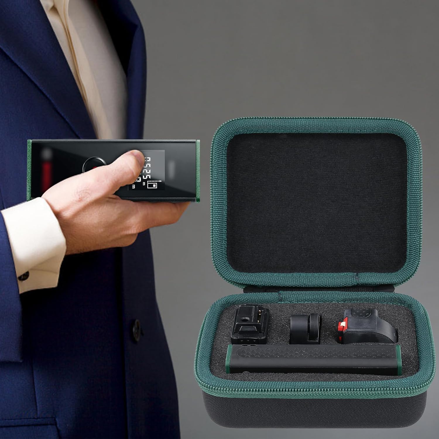 - Material: EVA.Verpackungsdetails: Nur Hartschalenkoffer für Bosch Laserentfernungsmesser Zamo.(Nur Fall),Farbe:Schwarze tasche mit grün Reissverschluss