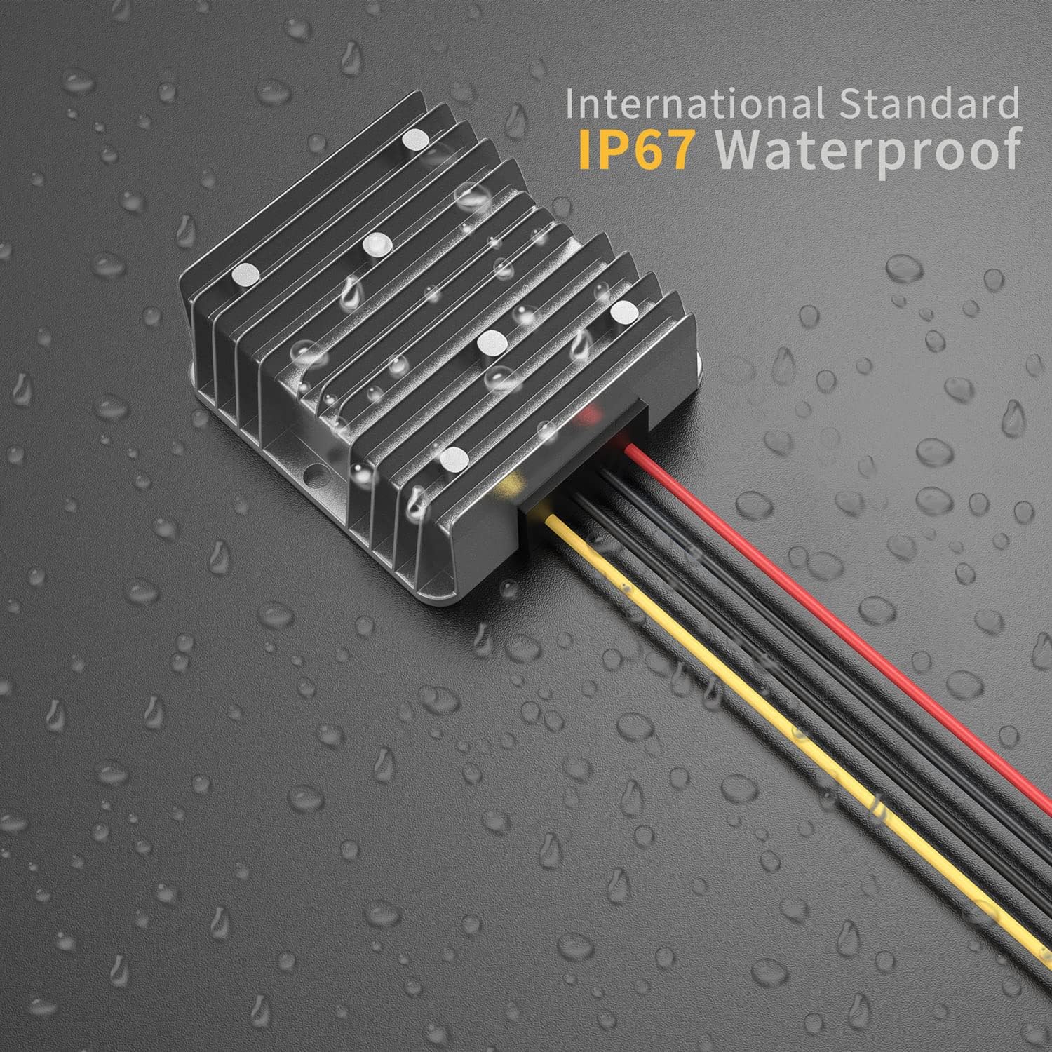- [Wasserdichte Aluminiumlegierung] 24 V auf 12 V Abwärtswandler mit IP67 wasserdichter Aluminium-Legierung-Silikon-Dichtungstechnologie kann 100% wasserdicht, stossfest, feuchtigkeitsdicht, staubdicht und stossfest und bessere Wärmeableitung erreichen,