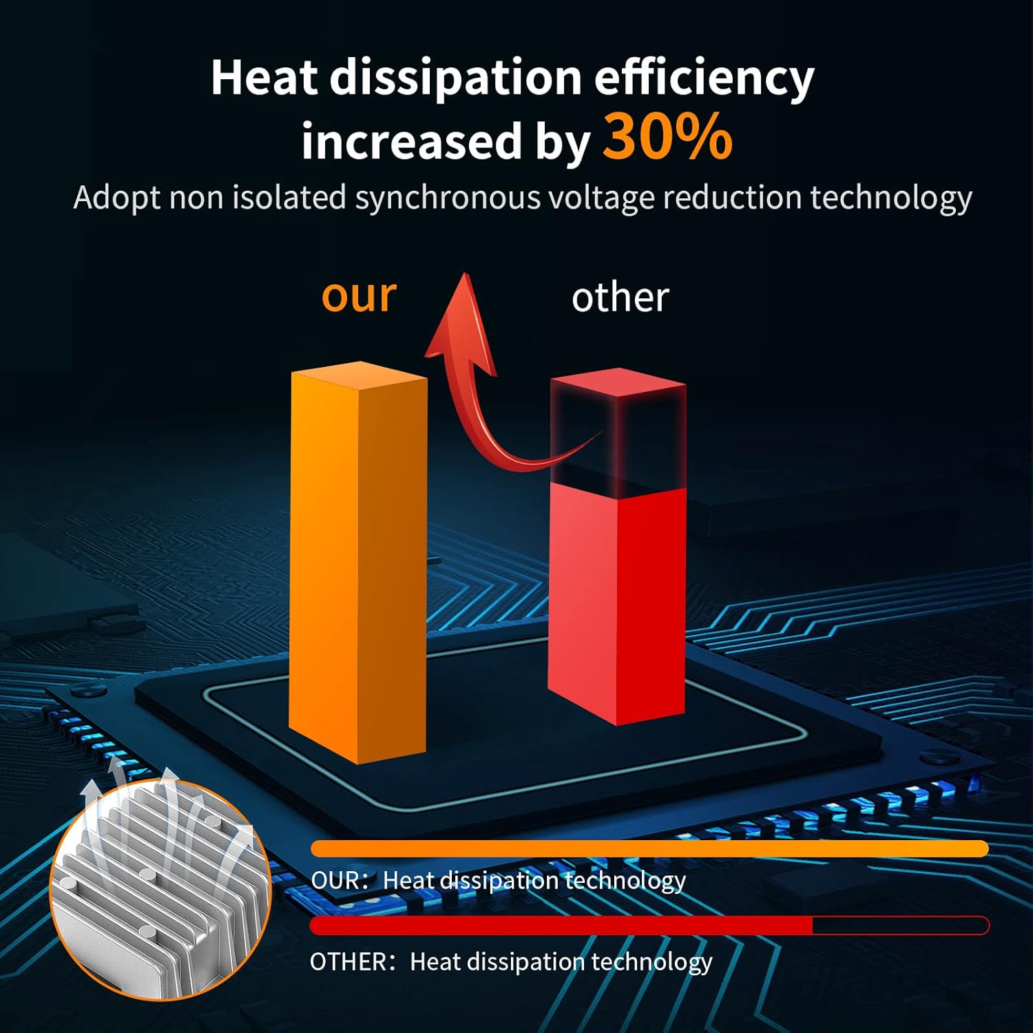 - [Hohe Effizienz Umwandlungsrate] Synchrongleichrichtertechnologie verfügt über mehrere intelligente Schutzfunktionen, mit hoher Umwandlungseffizienz und guter Stabilität. Umwandlungseffizienz kann 95 % erreichen, Welligkeit: 50 mv,