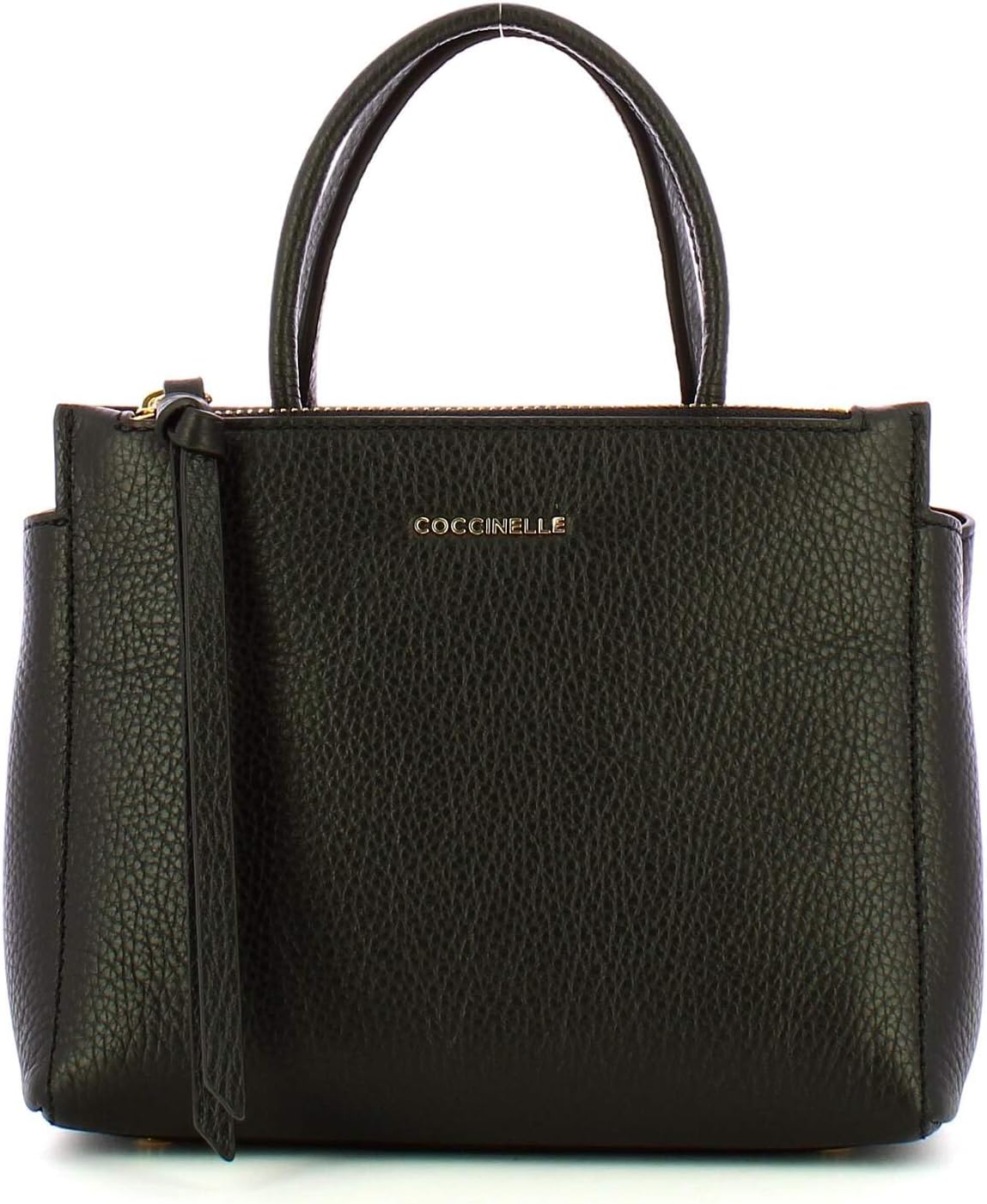 PRODUKTBESCHREIBUNGEN COCCINELLE Handtasche im kantigen und kompakten Format Daten Handtasche: o Masse: Breite ca. 22 cm, Höhe ca. 15 cm, Tiefe ca. 12 cm o Gewicht: ca. 680 g o Farbe: Noir (schwarz) o 2 Henkel verstärkt: ca. 26 cm o 1 Schulterriemen abnehmbar, verstellbar: ca. 105 cm - 119 cm o Material: Aussen 100% Rindsleder, innen 44% Polyamid, 56% Polyurethan o Lieferumfang: COCCINELLE Handtasche mit Etikett, 1 x Schulterriemen, 1 x Staubbeutel Ausstattung Handtasche: o Handtasche wird mit Lasche und Magnetverschluss geschlossen o Im Hauptfach 1 Einschubfach o Auf der Vorderseite 1 Fach mit Überschlagklappe und Steckverschluss o Auf der Rückseite 1 Zipperfach o Mit verstärktem Boden und Schutzfüsschen ausgestattet o Ist standfest o Das COCCINELLE Logo ist gut sichtbar eingearbeitet COCCINELLE Arlettis Handbag - Eine zeitlos elegante Handtasche für die Damenwelt Probleme bei Taschensuche? COCCINELLE hat eine kompakte und schicke Lösung für Sie. Mit der COCCINELLE Arlettis Handbag Handtasche haben Sie Ihren Alltag im Griff. Brauchen Sie etwas Kompaktes mit vielen Fächern zum Ordnung halten dann kommt diese Tasche absolut gelegen. Das neue sensationelle Design fühlt sich nicht nur toll an, sondern ist auch aufgrund der hochwertigen und edlen Verarbeitung ein echter Hingucker.