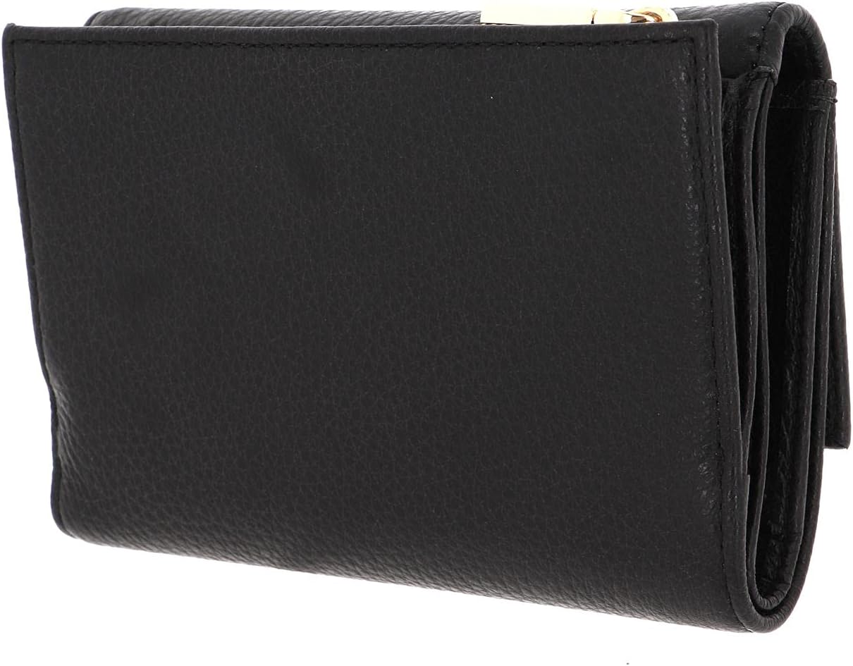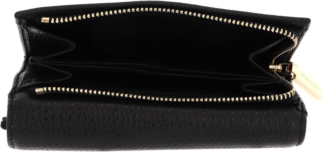 PRODUKTBESCHREIBUNGEN COCCINELLE Geldbörse mit toller Fächerausstattung Daten Geldbörse: o Masse geschlossen: Breite ca. 14,5 cm, Höhe ca. 10,5 cm, Tiefe ca. 4 cm o Masse offen: Breite ca. 27 cm, Höhe ca. 10 cm o Gewicht: ca. 175 g o Farbe: Noir (Schwarz) o Material: Aussen 100% Rindsleder, innen 100% Polyester o Lieferumfang: COCCINELLE Geldbörse mit Etikett in COCCINELLE Geschenkbox Ausstattung Geldbörse: o Geldbörse wird mit Überschlagklappe und Druckknopf geschlossen o 12 Fächer für Kreditkarten, EC Karten, Visitenkarten etc. o 2 Geldscheinfächer o 4 Seitenfächer für Personalausweis, Kalender, Bilder etc. o 1 Einschubfach für Einkaufszettel, Kassenbon etc. o 1 Zipperfach für Münzgeld / Kleingeld o Auf der Rückseite 1 Zipperfach für Münzgeld / Kleingeld, unterteilt in 3 Fächer o Das COCCINELLE Logo ist gut sichtbar eingearbeitet COCCINELLE Metallic Soft Wallet Grainy Leather - Die ideale Geldbörse für unterwegs Diese trendige Geldbörse von COCCINELLE wird Ihr neues Lieblingsstück! Das charmante Design ist schick und bereitet einfach Freude. Ihr Inneres bietet ausreichend Stauraum, um Ihre Münzen, Scheine und wichtigsten Bankkarten immer griffbereit zu haben. So behalten Sie stets den besten Überblick über Ihre Finanzen. Holen auch Sie sich mit diesem COCCINELLE Metallic Soft Wallet Grainy Leather ein Stück Leichtigkeit in Ihren Alltag!