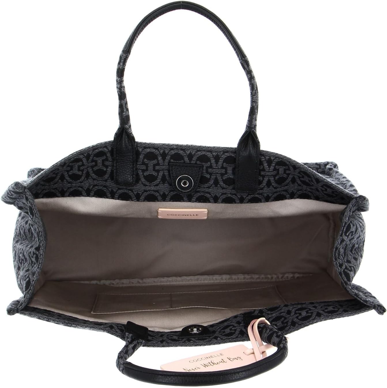 PRODUKTBESCHREIBUNGEN COCCINELLE Handtasche mit geräumigem Hauptfach Daten Handtasche: o Masse: Breite ca. 40 cm, Höhe ca. 30 cm, Tiefe ca. 15 cm o Gewicht: ca. 860 g o Farbe: Mul. Antrac / Noir (schwarz / dunkelgrau) o 2 Henkel verstärkt: ca. 35 cm o Material: Aussen 80% Baumwolle, 20% Rindsleder, innen 100% Baumwolle o Lieferumfang: COCCINELLE Handtasche mit Etikett, Staubbeutel, Anhänger Ausstattung Handtasche: o Im Hauptfach 4 Einschubfächer o Mit verstärktem Boden ausgestattet o Ist standfest o Besitzt geräumiges Hauptfach o Das COCCINELLE Logo ist gut sichtbar eingearbeitet COCCINELLE Never Without Bag Jacquar Handbag - Die Handtasche mit viel Platz Schick aber dezent zeigt sich die COCCINELLE Handtasche. Im Inneren kommen all Ihre Habseligkeiten problemlos unter und in extra Nebenfächern können Sie alles prima sortieren, sodass Sie stets eine tolle Übersicht haben. Mit der COCCINELLE Never Without Bag Jacquar Handbag Handtasche haben Sie einen auffällig schönen Alltagsbegleiter, der zu zahlreichen Outfits kombinierbar ist.