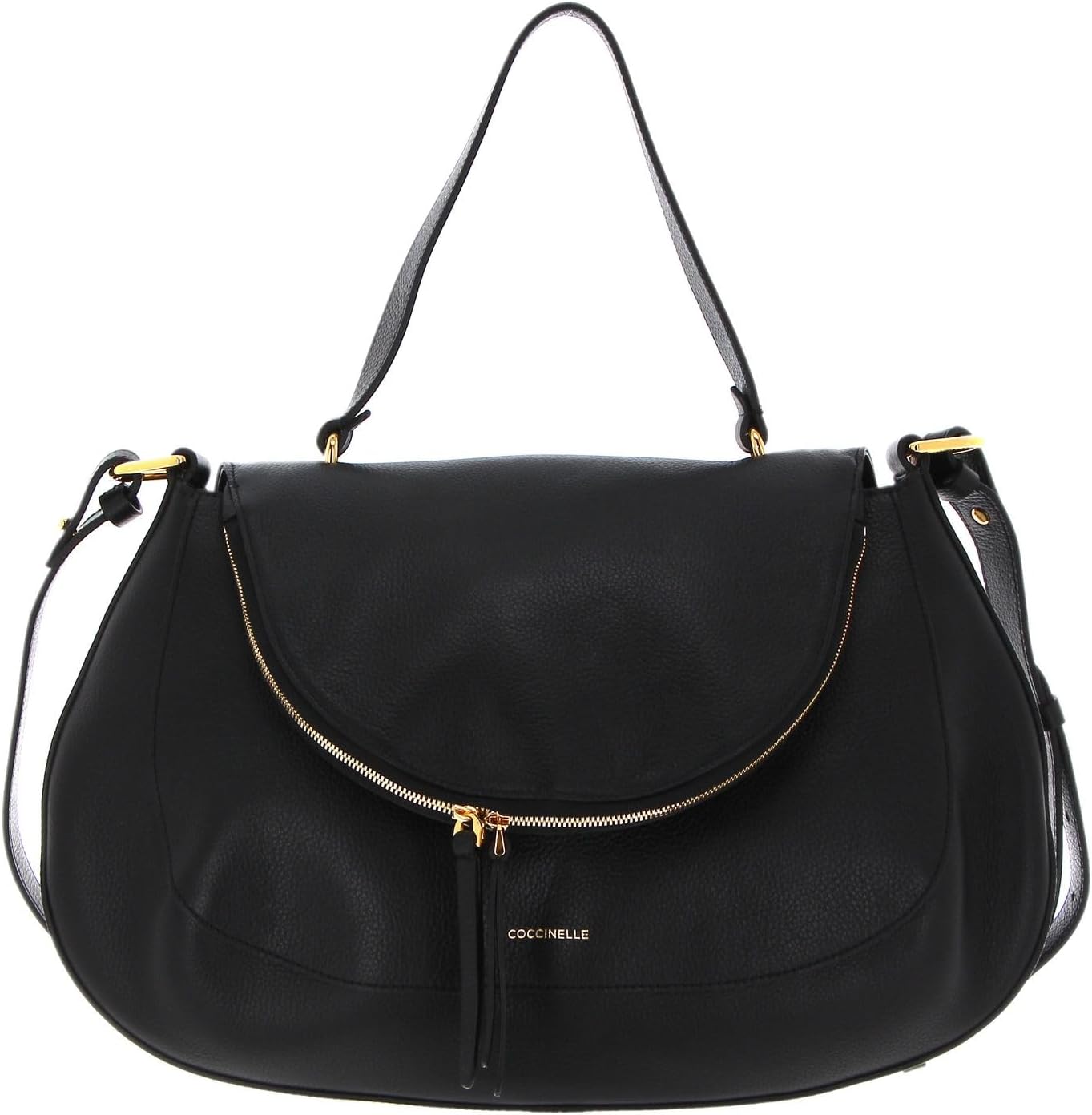 PRODUKTBESCHREIBUNGEN COCCINELLE Schultertasche mit abnehmbaren Schulterriemen Daten Schultertasche: o Masse oben: Breite ca. 19 cm, Höhe ca. 14,5 cm, Tiefe ca. 5,5 cm o Masse unten: Breite ca. 25 cm, Höhe ca. 14,5 cm, Tiefe ca. 5,5 cm o Gewicht: ca. 560 g o Farbe: Noir (schwarz) o 1 Schulterriemen verstellbar, abnehmbar: ca. 80 cm - 97 cm o 1 Henkel: ca. 30 cm o Material: Aussen 100% Rindsleder, innen 100% Baumwolle o Lieferumfang: COCCINELLE Schultertasche mit Etikett, 1 x Staubbeutel Ausstattung Schultertasche: o Schultertasche wird mit Überschlagklappe und Magnetverschluss geschlossen o Auf der Vorderseite 1 Einschubfach o Auf der Überschlagklappe 1 Zipperfach o Ist standfest o Das COCCINELLE Logo ist gut sichtbar eingearbeitet COCCINELLE Coccinelle Sole Crossbody Bag - Die Schultertasche mit schicken metallenen Akzenten Beeindrucken Sie mit Stil auf ganzer Linie mit der COCCINELLE Schultertasche! Einen modischen Hingucker wie diese COCCINELLE Coccinelle Sole Crossbody Bag passt perfekt in Ihren Alltag und in Ihre Taschensammlung. Überzeugen Sie mit Eleganz und Charme und schenken Sie Ihrem Styling einen Hauch Flair mit dieser wunderbaren Tasche! Ausgezeichnetes Leder und eine exakte Verarbeitung sind hier definitiv vorhanden. Auch Smartphone und weitere Kleinigkeiten finden hier ein schönes Heim.