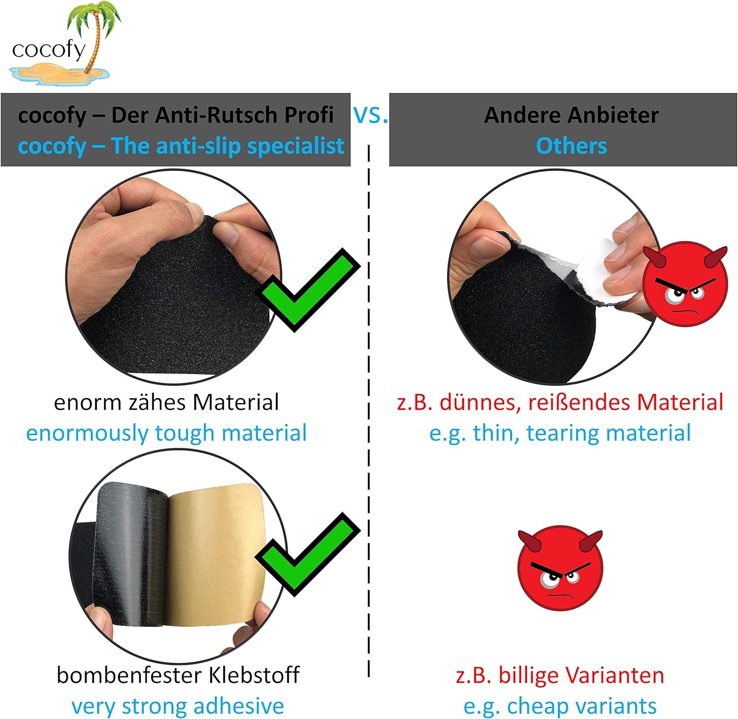 - ✅ 💦 EXTRA HOHER HALT - Durch unsere extrem starke Profilierung in der High-Tech „Korund“-Oberfläche. Die Geometrie macht den Unterschied! Die stark angeraute „sandpapierartige“ Oberfläche ist auch bei Nässe und Verschmutzung noch rutschhemmend.