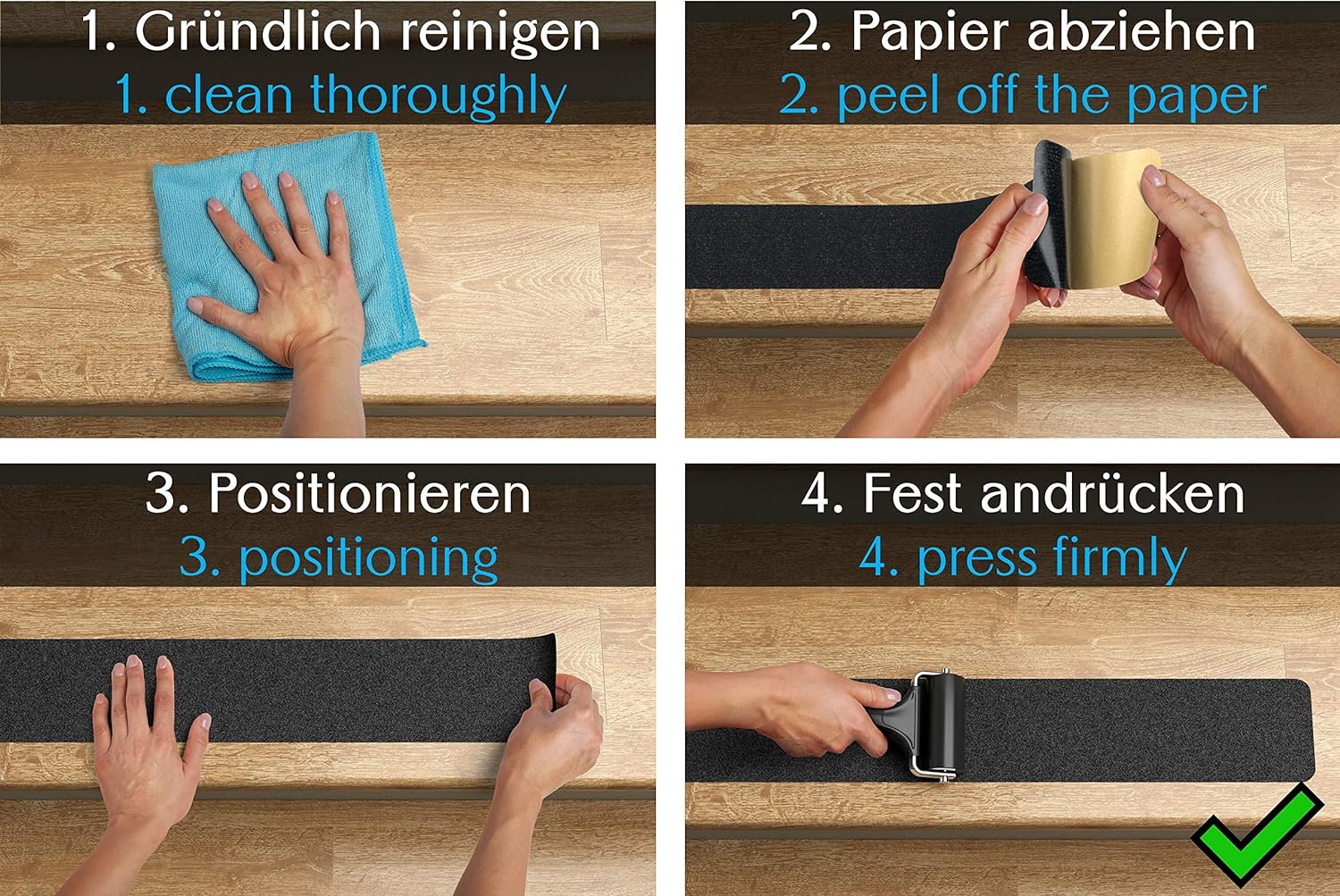 - ✅ 💪🏼 ULTRASTARKE KLEBEKRAFT - Der High-Power Klebefilm auf der Unterseite der Anti Rutsch Sticker sorgt für einen optimalen Halt auf den verschiedensten Oberflächen beispielsweise Steintreppen, Edelstahl, glatten Holztreppen, lackierten Treppen. Bei Bedarf rückstandslos entfernbar.