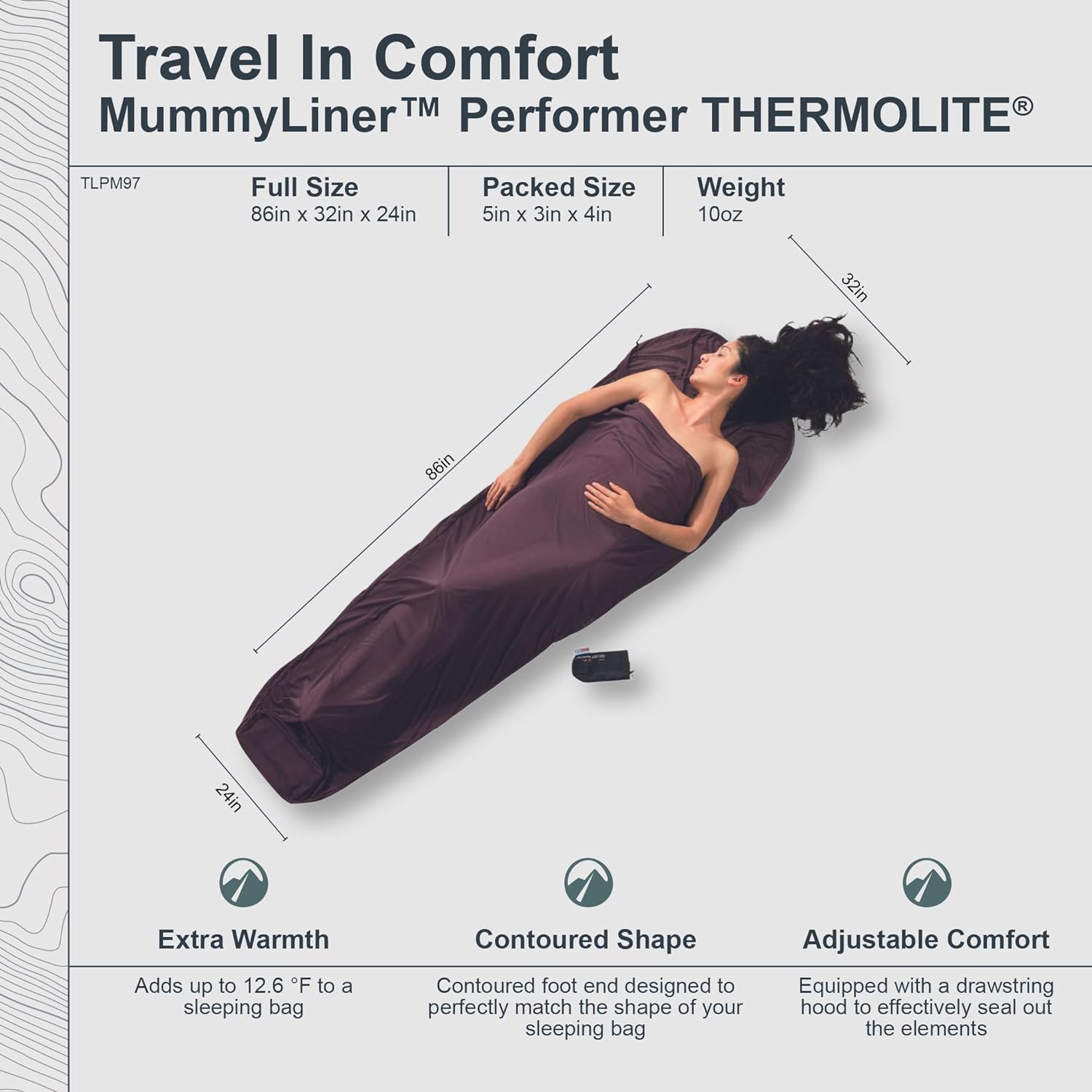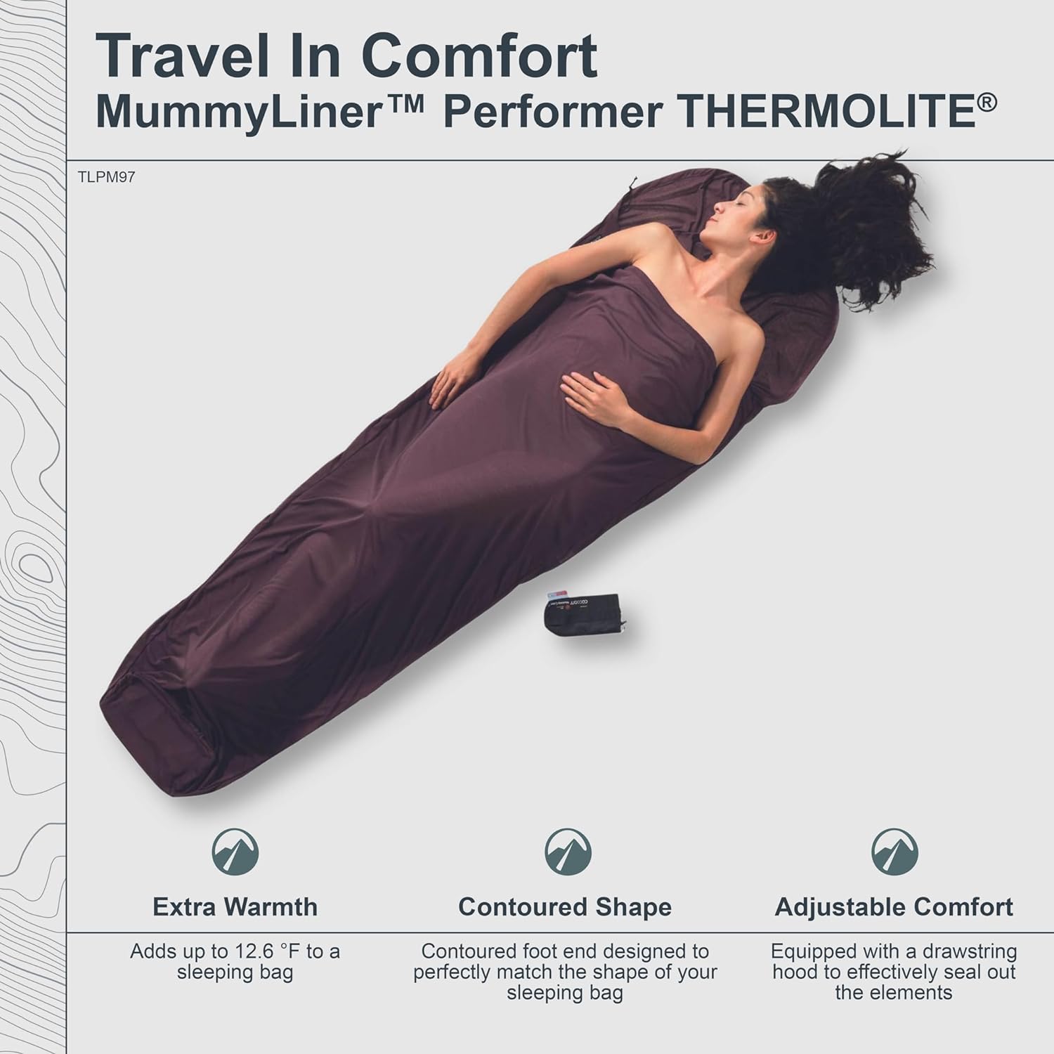 PRODUKTBESCHREIBUNGEN Ein MummyLiner ist ein extrem leichter mumienförmiger Innenschlafsack zum Schutz des Schlafsackes vor Verschmutzung und zur Erhöhung seiner Wärmeleistung. COCOON Thermolite Performer TravelSheets sind extrem leicht, garantieren optimale Wärmeleistung und leiten Feuchtigkeit perfekt ab. Sie sind dehnbar und angenehm weich auf der Haut. Thermolite bietet Wärme und Komfort bei minimalem Gewicht - auch bei Nässe. Hohlfasern schliessen Luft ein und sorgen für hohe Isolationswirkung. Darüber hinaus trocknet Themolite um 20% schneller als andere Isolierstoffe und um 50% schneller als Baumwolle. Es transportiert Feuchtigkeit von der Haut an die Oberfläche, wo sie rasch verdunstet. Cocoon Mummy Liner - thermolite Wärmender, leichter und weicher Thermoschlafsack Mumienschlafsack Abmessungen: 220 x 80/60 cm Packmass: 14x9 cm Zusätzliche Wärmeleistung bis zu +7,0 °C Gewicht: 370 g Cocoon Mummy Liner Ein Mummy Liner ist ein extrem leichter mumienförmiger Innenschlafsack