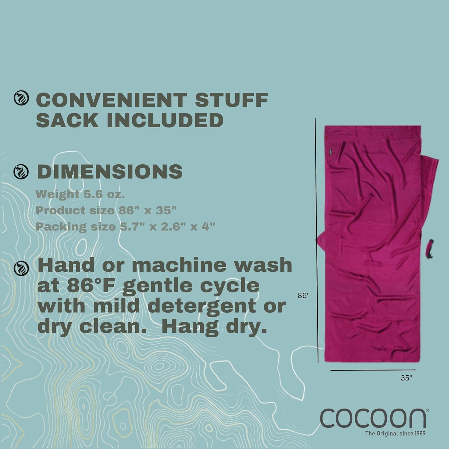 PRODUKTBESCHREIBUNGEN Ein TravelSheet ist ein extrem leichter und geräumiger Leicht-Reiseschlafsack oder Innenschlafsack, der in Hotels, Jugendherbergen, auf Berghütten und Booten verwendet wird. Auch als Schlafsack in warmen und tropischen Gebieten und als Gästebettwäsche leistet ein TravelSheet gute Dienste. Extrem leichter und geräumiger Leicht-Reiseschlafsack oder Innenschlafsack zur Verwendung in Hotels, Jugendherbergen, auf Berghütten und Booten. Höchste Seidenqualität ist für uns eine Selbstverständlichkeit. Die extrem leichten, handlichen TravelSheets aus Seide sind sehr weich, hautfreundlich und temperaturausgleichend: sie kühlen bei heissem Wetter und wärmen bei Kälte. Cocoon Travel Sheet - Silk Seidenschlafsack Bequemer Deckenschlafsack Abmessungen: 220 x 90 cm Packmass: 14,5 x 6,5 cm Gewicht: 160 g Zusätzliche Wärmeleistung bis zu +5,3 °C Material: 100% Seide Ein Travel Sheet ist ein extrem leichter und geräumiger Leicht-Reiseschlafsack oder Innensch Mehr