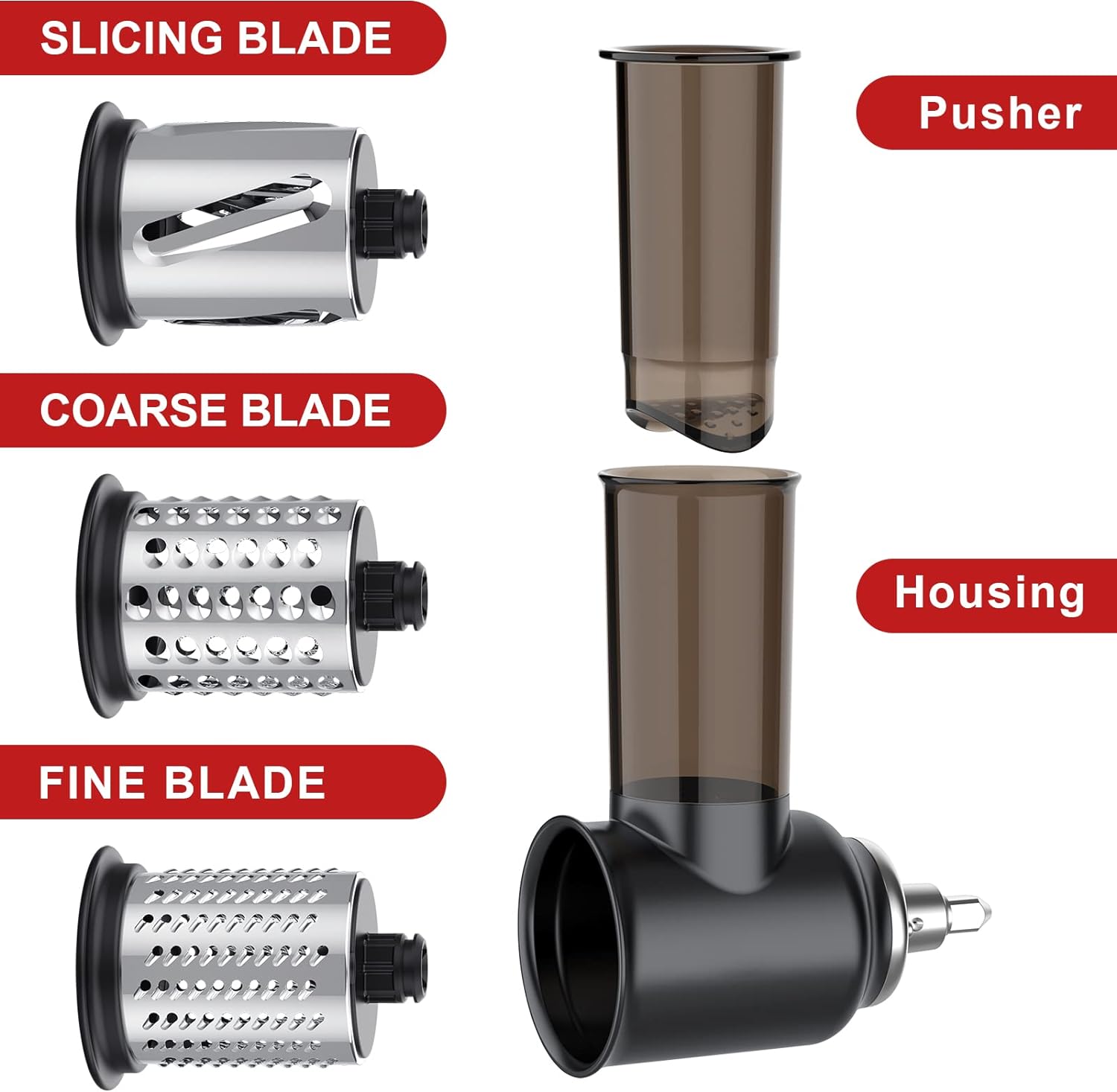 • 【Lieferumfang für Kitchenaid Zubehör】-- Es enthält 1 reinigungsbürste und 3 austauschbare edelstahl-Trommelblätter: 5 mm Schneidetrommel, 6 mm kronreibe, 3 mm raspeltrommel ,die Ihren gerecht zubehoer für kitchenaid wurden unterschiedlichen