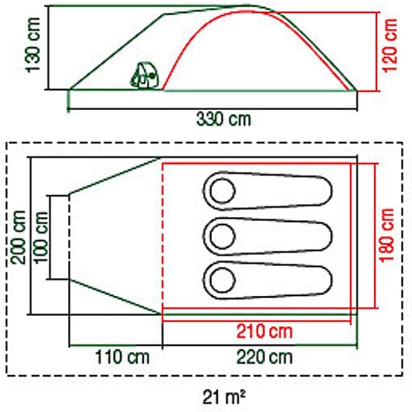• Mit Moskitonetz und Belüftungsschlitzen im Schlafbereich. Ferner sind im Lieferumfang Abspannleinen, Heringe für Grasboden sowie eine Transporttasche enthalten