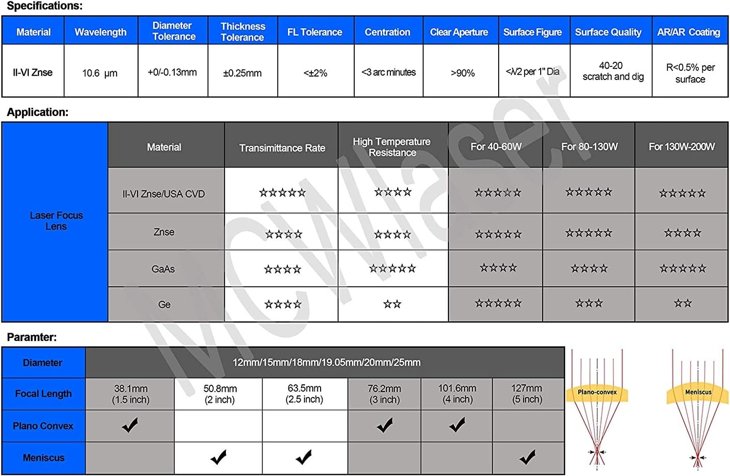 COLETECH High Power CVD IIVI ZNSE Objektiv f¨¹r Co2 Lasergravierer Cutter 40W -200W D: 20mm FL: 2" D