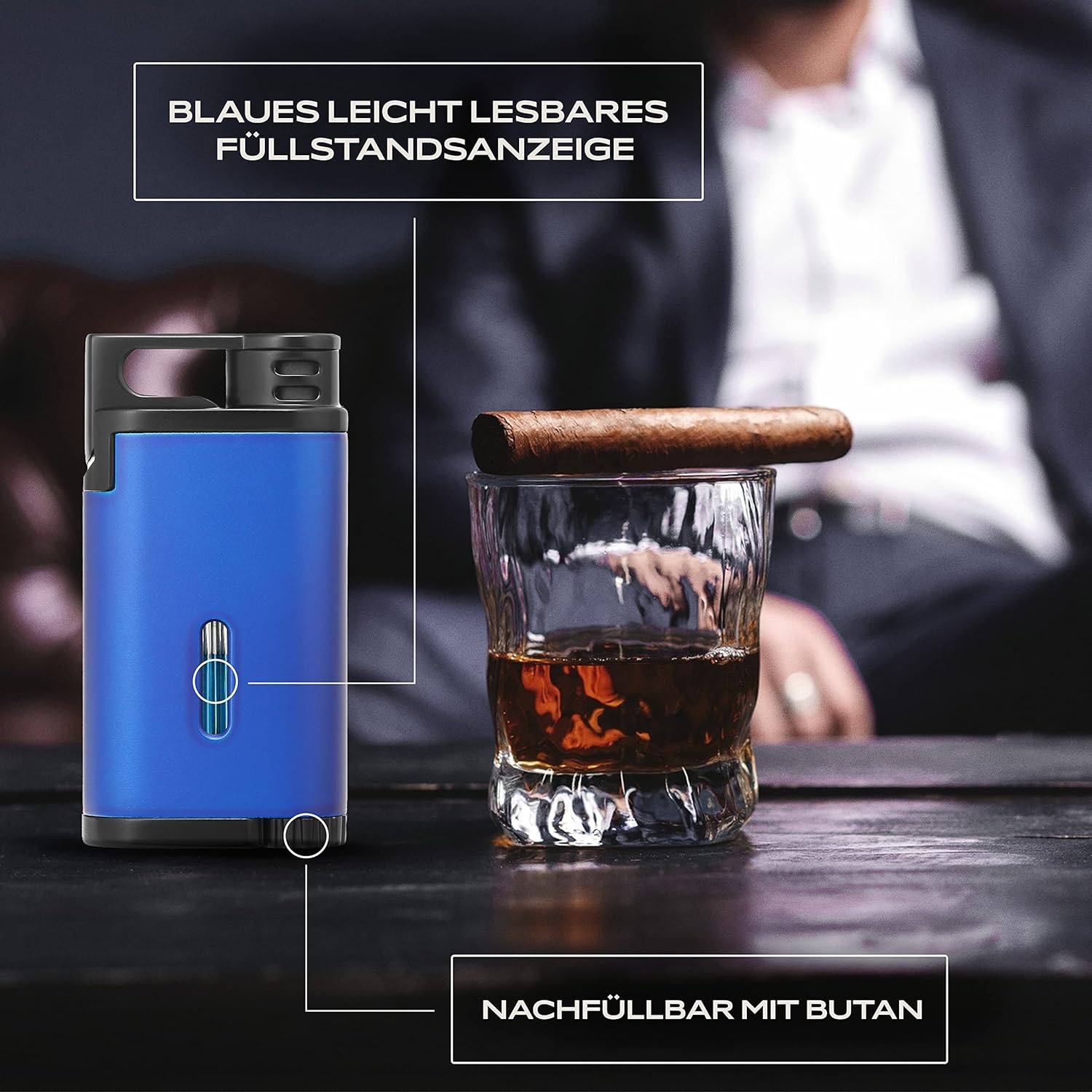 - Das grosse Einstellrad für den Brennstoff ermöglicht eine einfache Einstellung der Flamme und sorgt für die perfekte Flamme für Ihre Zigarre oder Zigarette.