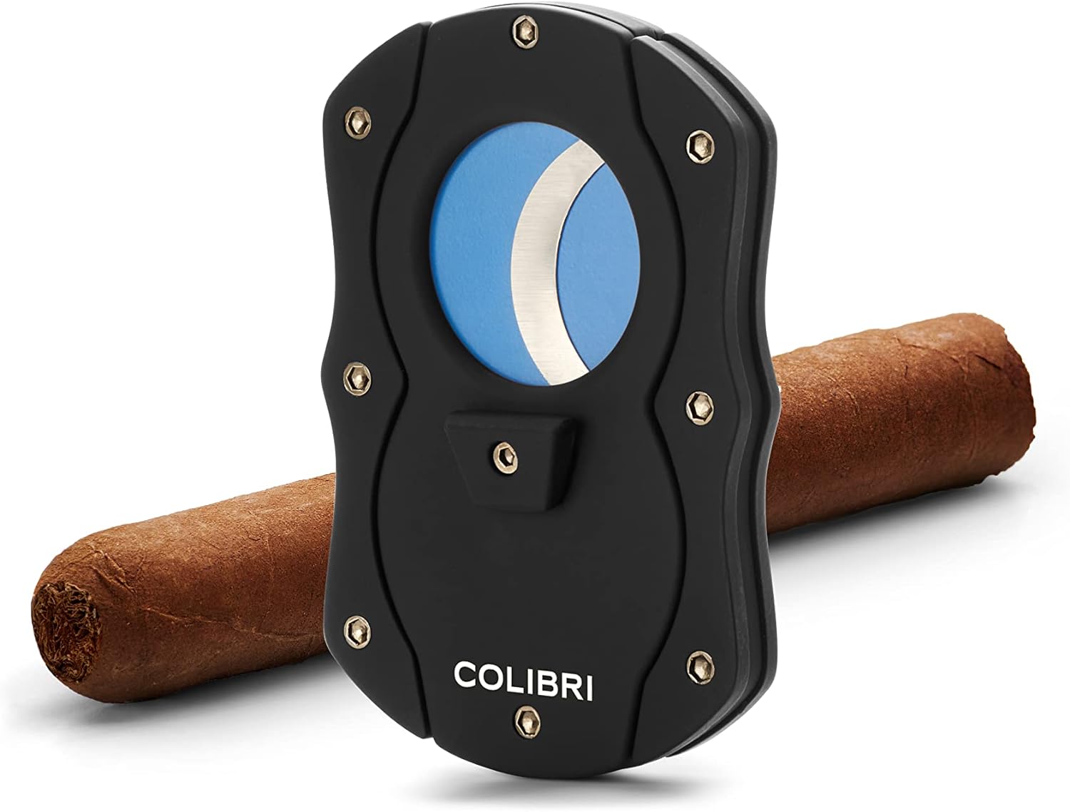 Colibri Cut | Doppel-Guillotine-Zigarrenschneider | Schwarz mit Blauen Klingen |Federauslöser | Bis