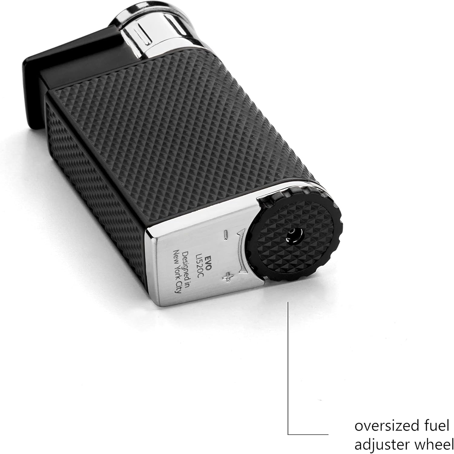 - Das grosse Einstellrad für den Brennstoff ermöglicht eine einfache Einstellung der Flamme und sorgt für die perfekte Flamme für Ihre Zigarre oder Zigarette.