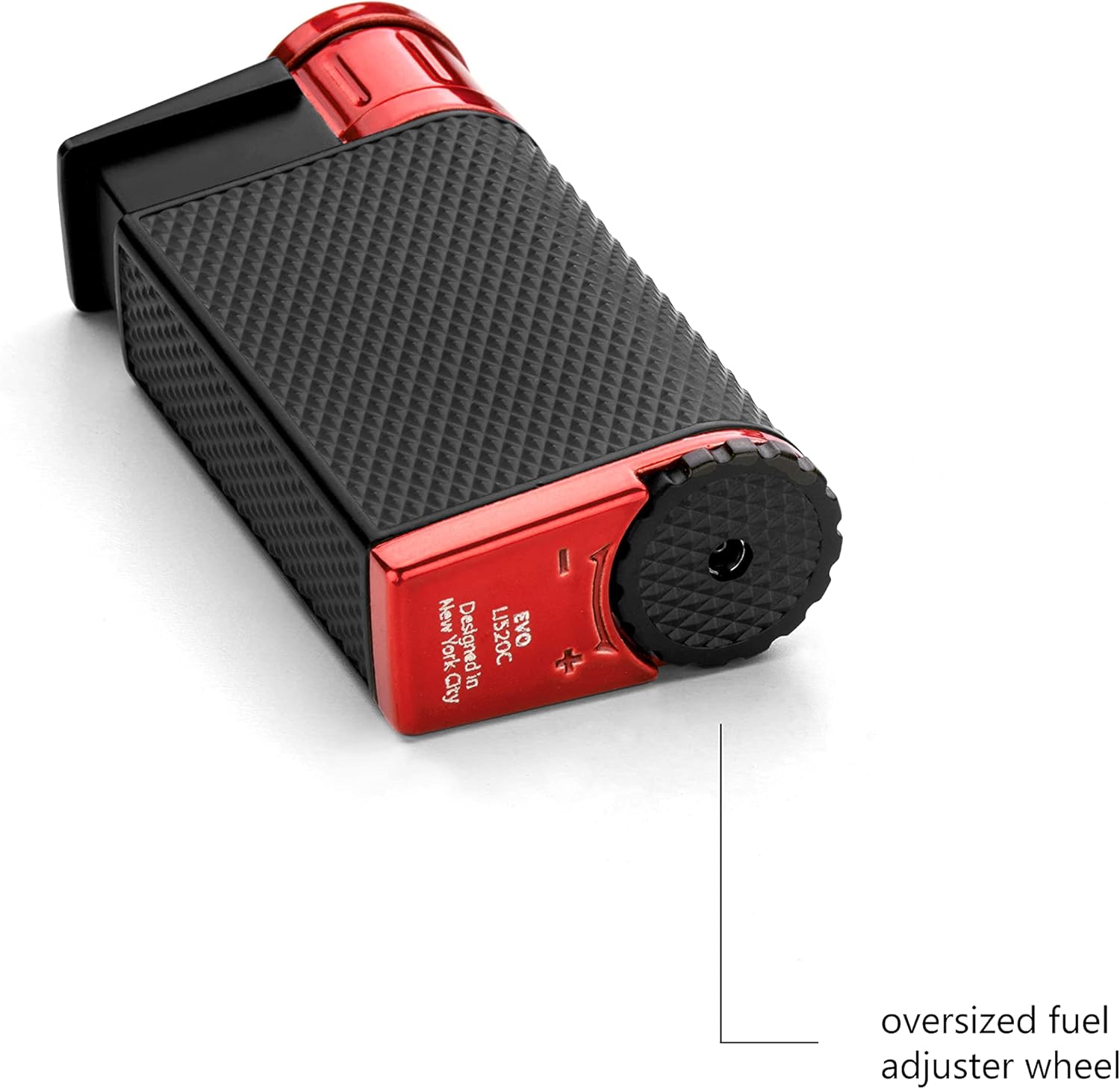 • Das grosse Einstellrad für den Brennstoff ermöglicht eine einfache Einstellung der Flamme und sorgt für die perfekte Flamme für Ihre Zigarre oder Zigarette.