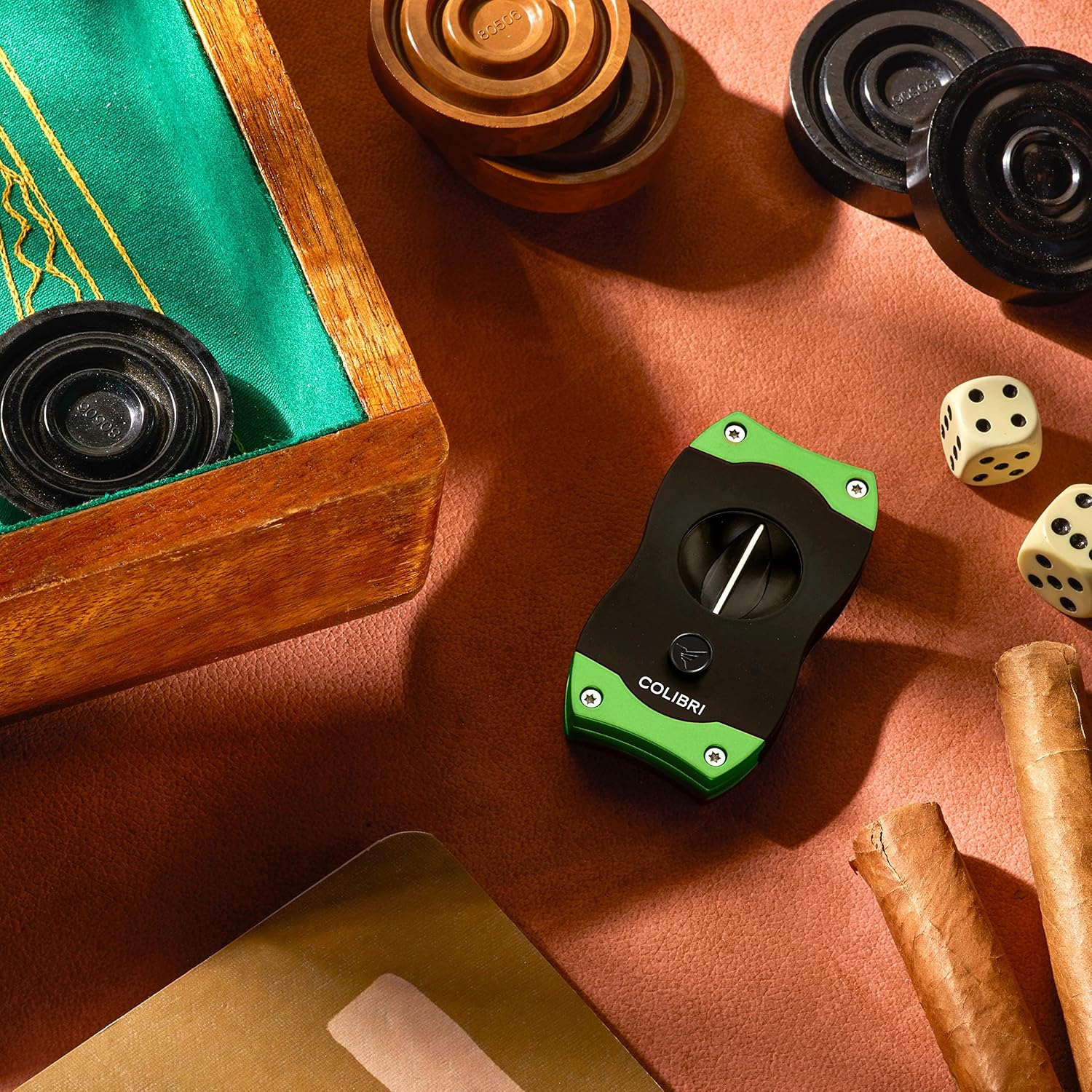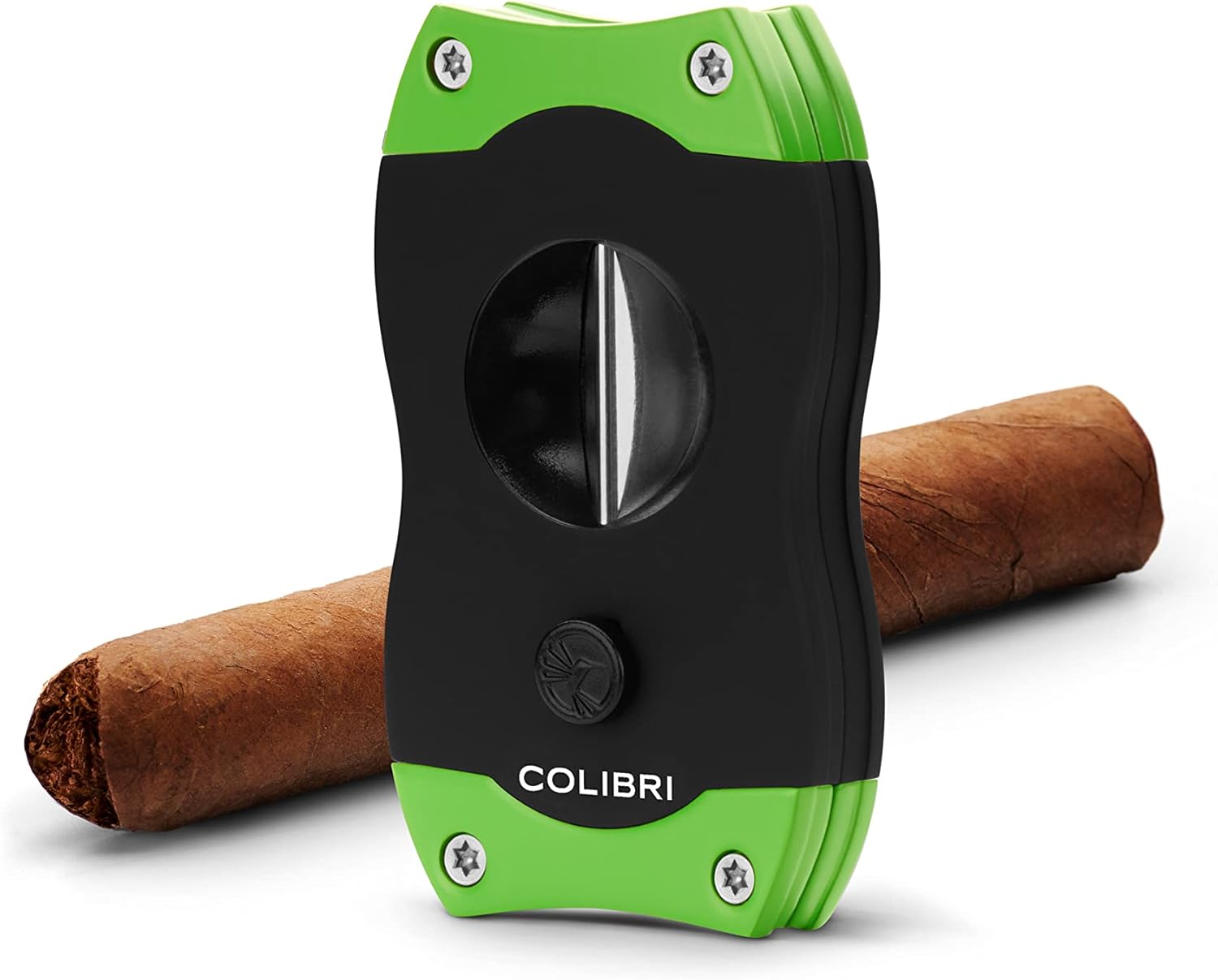 Colibri V-Cut Zigarrenschneider | Schwarz Mit Blauakzenten | Federauslöser | Tiefer 7mm V-Schnitt |