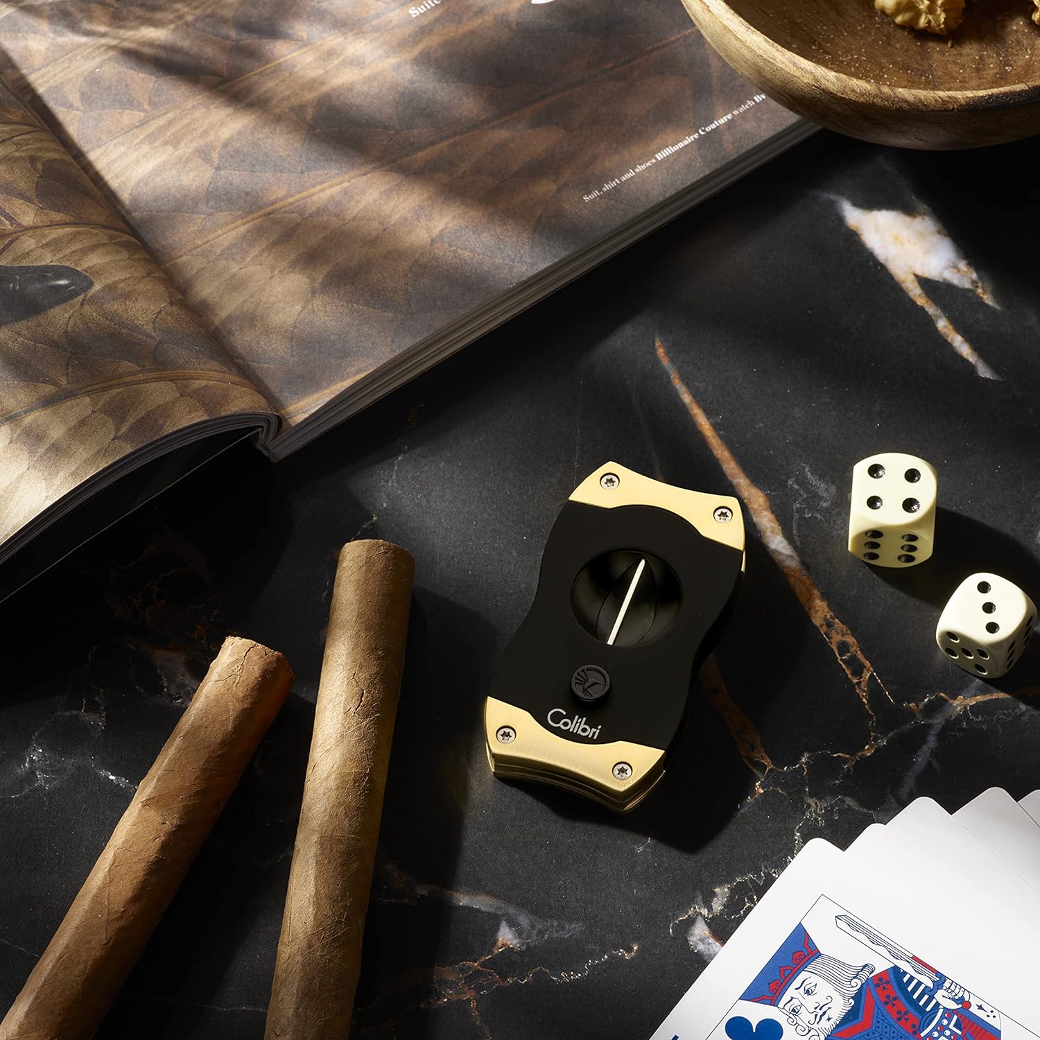 PRODUKTBESCHREIBUNGEN Zigarrenschneider aus gebürstetem schwarzem und goldenem Metall und Edelstahl. Es ermöglicht Ihnen, den Kopf der Zigarre in einer ?V?-Form zu schneiden, um alle Aromen freizusetzen und gleichzeitig das Deckblatt zu bewahren. Die Öffnung erfolgt über einen Druckknopf, der das Logo der Marke Colibri darstellt. MARKE Colibri MATERIAL Metall, Edelstahl. FARBEN Schwarz, gebürstetes Gold PRÄSENTATION Dieser Zigarrenschneider wird Ihnen in seinem schönen Originaletui geliefert. SPEZIFIKATIONEN Gebürstetes Gold Colibri V Cut Zigarrenschneider Automatisches Öffnen per Druckknopf V-förmige Klinge Manuelles Schliessen Schwarze Gummibeschichtung. Gewicht: 110 g. ABMESSUNGEN: Colibri V Cut Zigarrenschneider aus gebürstetem Gold. Länge x Breite x Dicke (cm): 7,4 x 4 x 1,1 cm Mehr