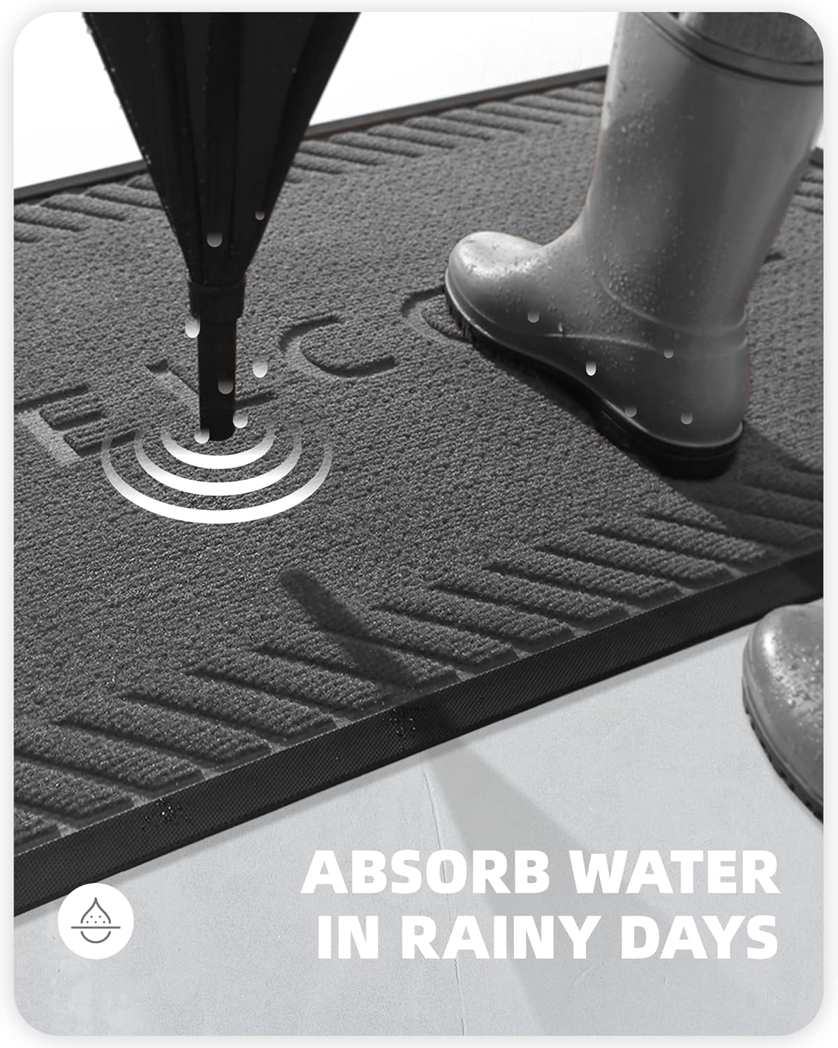 - ABSORBIEREND & SCHMUTZABWEISEND: Diese saugfähige Eingangstürmatte hält den Bereich an regnerischen Tagen wie ein Schwamm sauber und trocken. Keine rutschigen Türen mehr. Die schmutzfangmatte aussenbereich fängt Schmutz auf und hält Böden oder