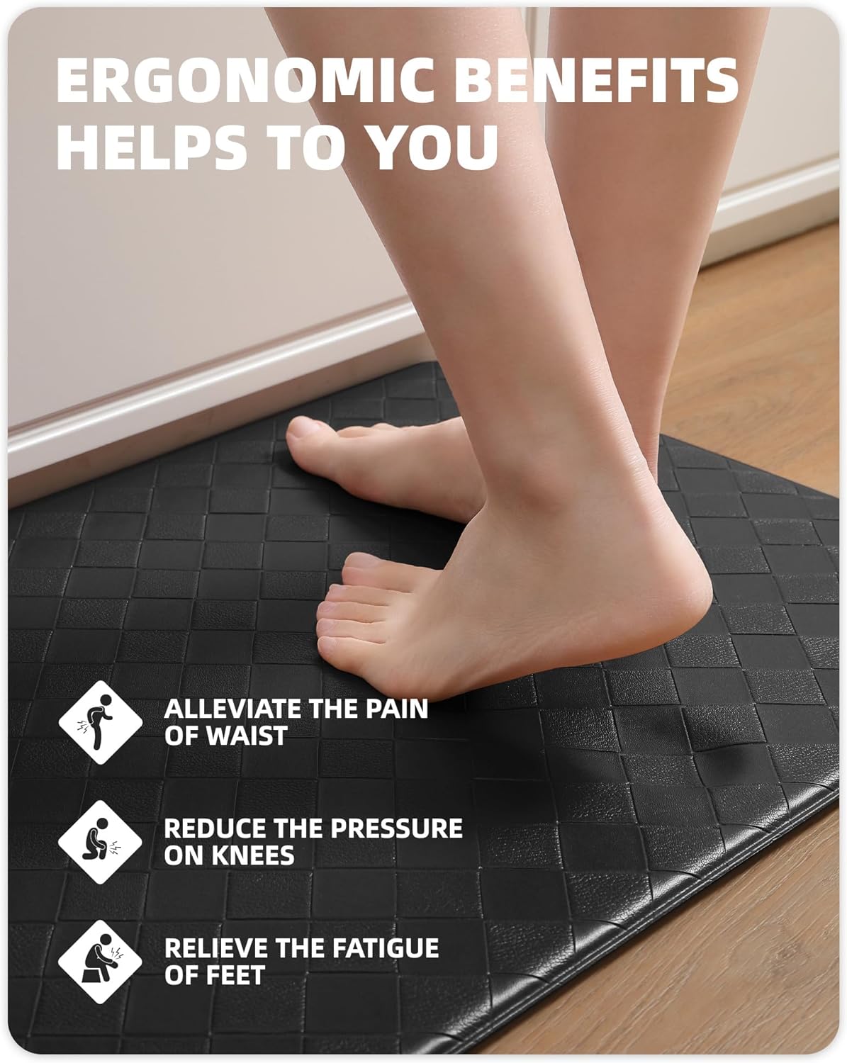 - [Premium-Material & Komfortabel]: Die Küchenmatte besteht aus umweltfreundlichem, langsam zurückprallendem geschäumtem PVC, auch wenn Sie lange beim Kochen stehen, kann sie Ihnen helfen, Ihre Füsse zu entspannen, keine Fussschmerzen mehr zu spüren