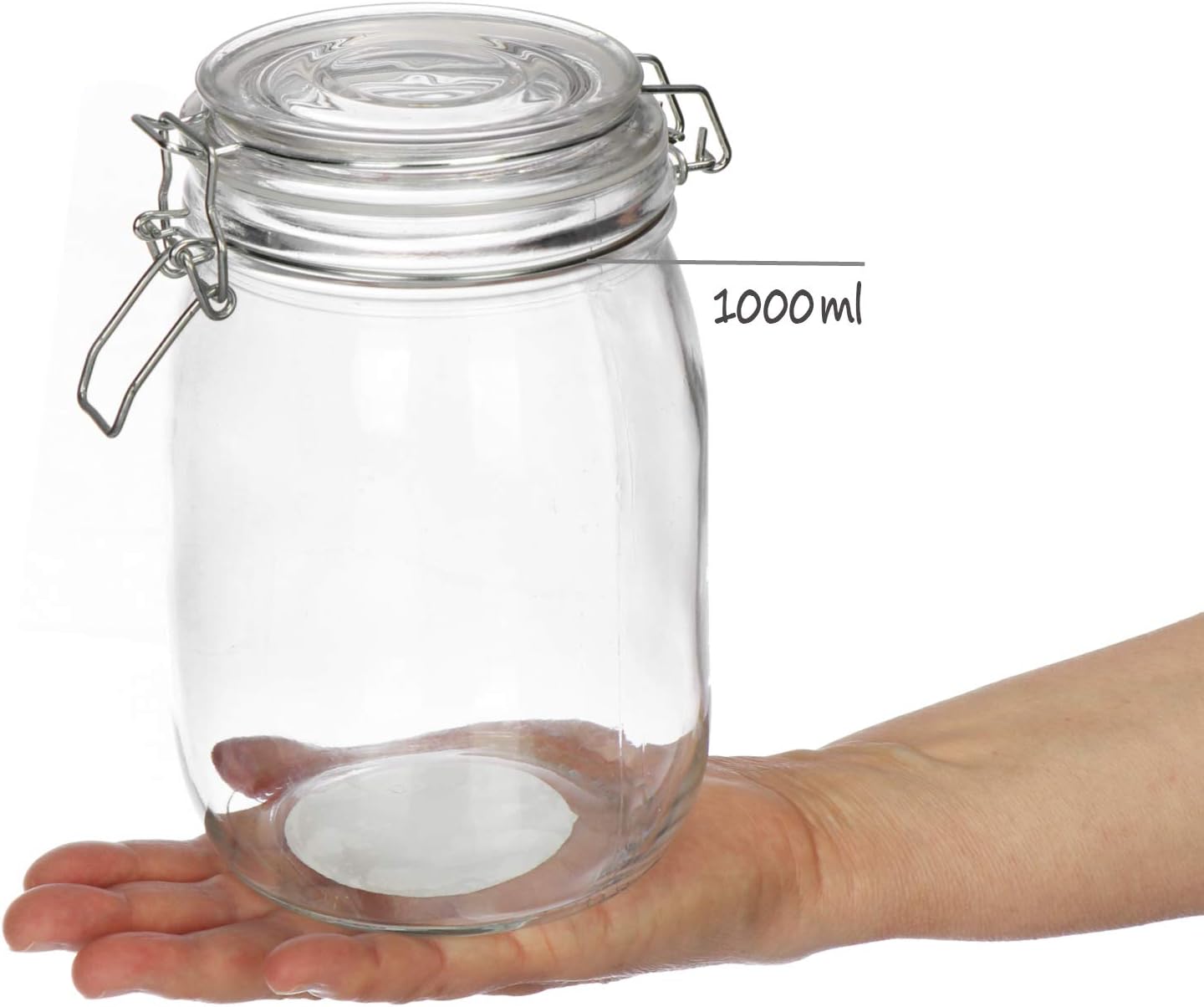 - LIEFERUMFANG: 2x Einmachglas mit Bügelverschluss // Material: Glas, Metall, Gummi // Farbe: transparent, silberfarben, weiss // Füllmenge: bis 1000ml // lebensmittelecht