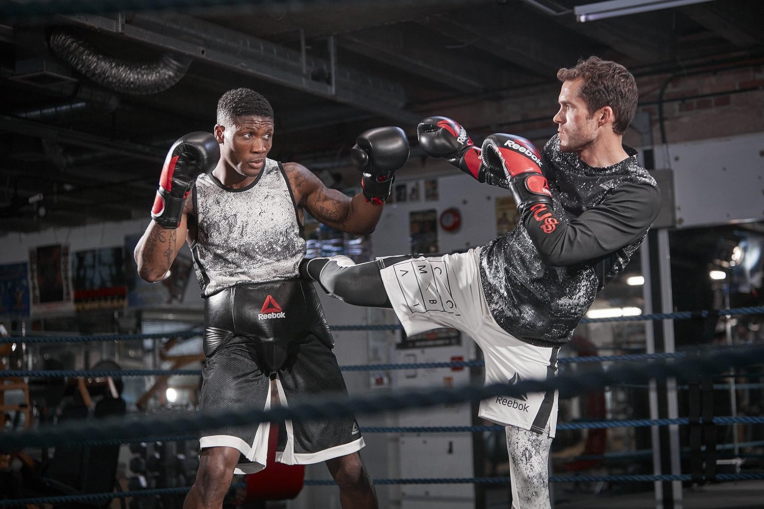 PRODUKTBESCHREIBUNGEN Die Reebok Boxhandschuhe aus Leder sind für alle Arten von Boxtraining geeignet, inklusive Sparring oder das Training mit einem Boxsack. Die Handschuhe passen sich geschmeidig an die natürliche Form der Faust an und schützen die Gelenke mit einer extra verdichteten Schaumpolsterung. Hochwertige Verarbeitung und stylisches Design zugleich; Die Reebok Boxhandschuhe aus Leder zeichnen sich durch einen Velcro Klettverschluss aus, der das Handgelenk zusätzlich unterstützt. Die atmungsaktiven Handflächen sorgen für eine gute Luftzirkulation und Comfort während des Trainings; Das angenehme Innenfutter der Handschuhe absorbiert Schweiss und sorgt für einen festen Sitz.
