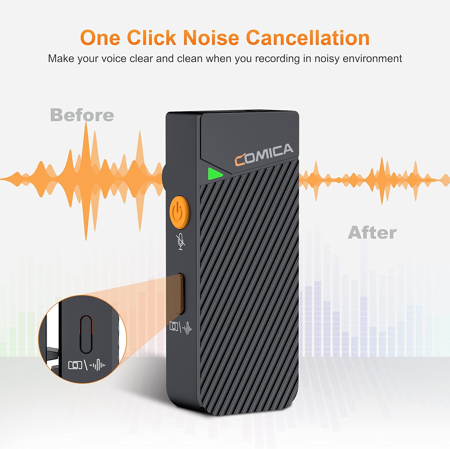 • 【Ein-Tasten-Geräuschunterdrückung】 Comica Vimo C2 drahtloses Lavalier-Mikrofonsystem verfügt über einen hochmodernen DSP-Rauschunterdrückungschip, der Umgebungsgeräusche effektiv eliminieren kann; 48Khz/24bit hohe Abtastrate