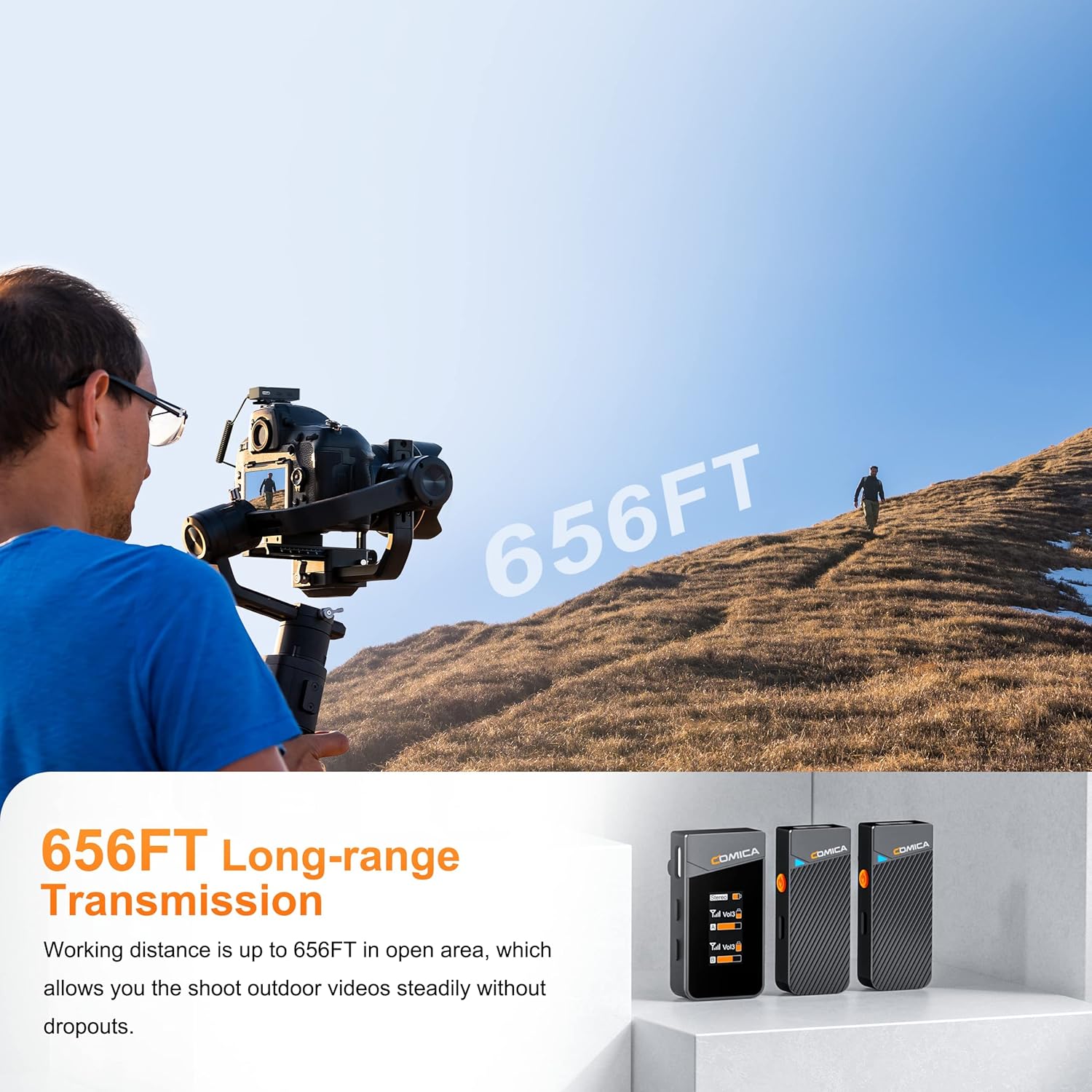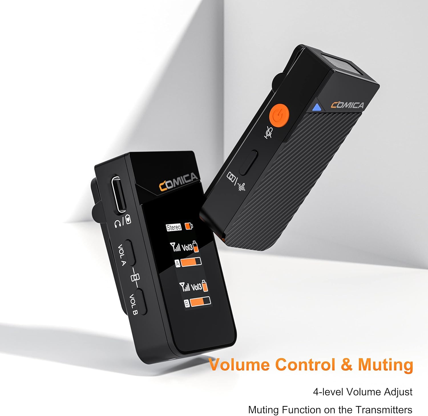 comica Vimo C2 Drahtloses Lavalier Mikrofon mit Noise Cancellation, 2.4G Funkmikrofon Ansteckmikrofo
