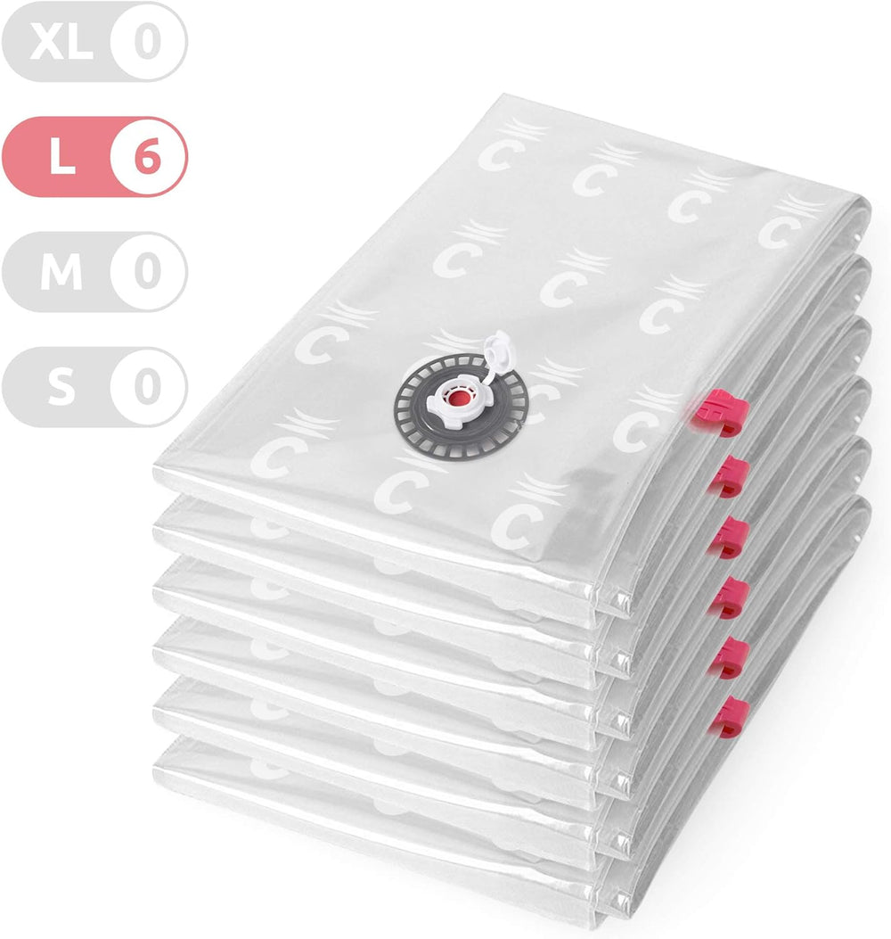 - Lieferumfang: 6 x Compactor platzsparende Vakuum-Kompressionsbeutel, 1 x Verschlussschieber, Material: Hochwertiges Polyethylen und Nylon, , Grösse L, Abmessungen: 80 x Höhe 100 cm, Aspispace-Serie, RAN8716