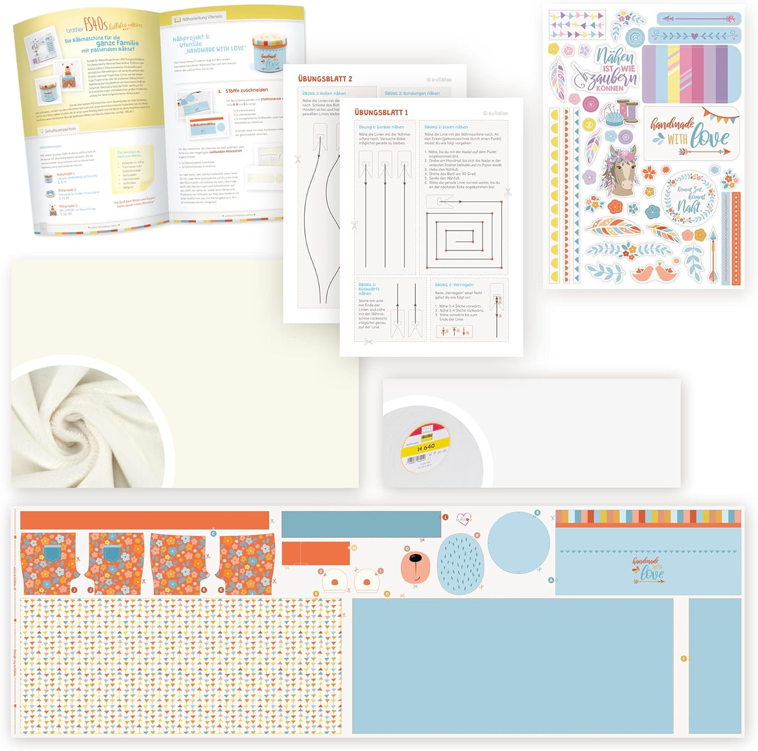 - Inkl. umfangreichem Nähkursmaterial für 3 tolle Nähprojekte mit Anleitung, Stoffen, Übungsblättern & Aufklebern zum Stylen der Maschine