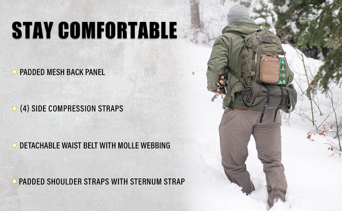 PRODUKTBESCHREIBUNGEN Das Condor Venture Pack bietet mit einem gepolsterten Laptopfach, diversen Fächern mit schnellem Zugriff und einem Volumen von 27,5 Liter genügend Platz und Unterbringungsmöglichkeit für die persönliche Ausrüstung. Details: Als Battle Belt verwendbarer, abnehmbarer Bauchgurt mit MOLLE-Schlaufen. Gepolsterter 3D-Airmesh Rückenbereich. Ergonomisch geformte Schultergurte und Brustgurt. Hauptfach mit Netztaschen und gepolstertem Laptopfach. Flaches Rückeneinschubfach für eine Wasserblase. Kleine fleecegefütterte RV-Fronttasche. Flaches RV-Einschubfach. RV-Tasche mit Office-/Adminunterteilung. Komprimierbares offenes Einschubfach. MOLLE-Befestigungsschlaufen für Zusatztaschen. Tragegriff. 4 Kompressionsriemen. Flauschklettfläche für ID-Patch. Wasserablauföse. Volumen: ca. 27,5 Liter. Abmessungen: ca. 53 x 35 x 16 cm. Gewicht: ca. 2170 g.