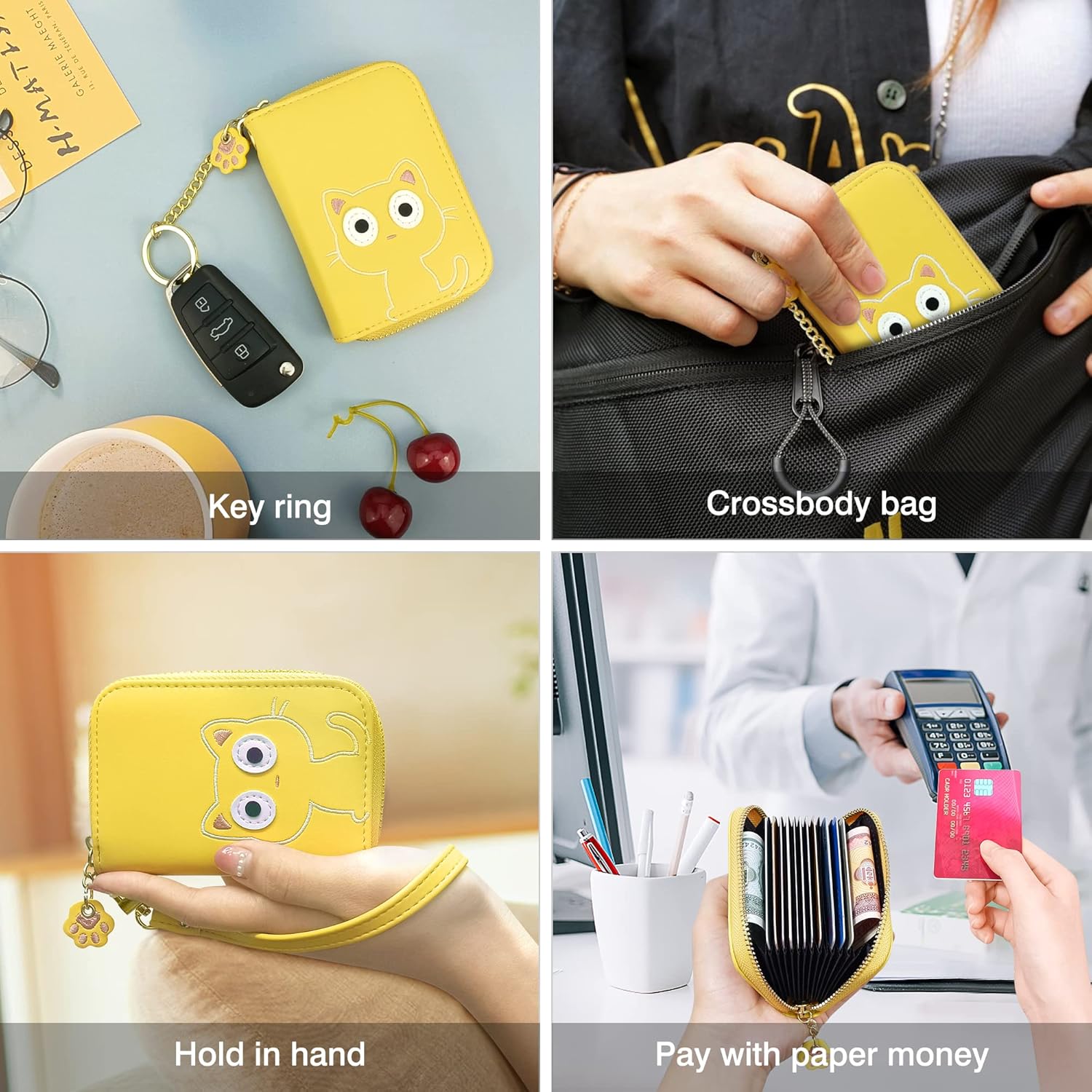 - ❀ Stilvolle und Niedliche - kartenetui damen mit mehreren Fächernist aus hochwertigem, weichem PU Leder gefertigt und bietet ein angenehmes Tragegefühl. Das niedliche Katzen-Stickdesign, das Sie attraktiver macht und Ihre Mode zeigt.
