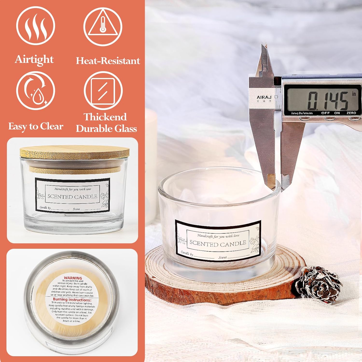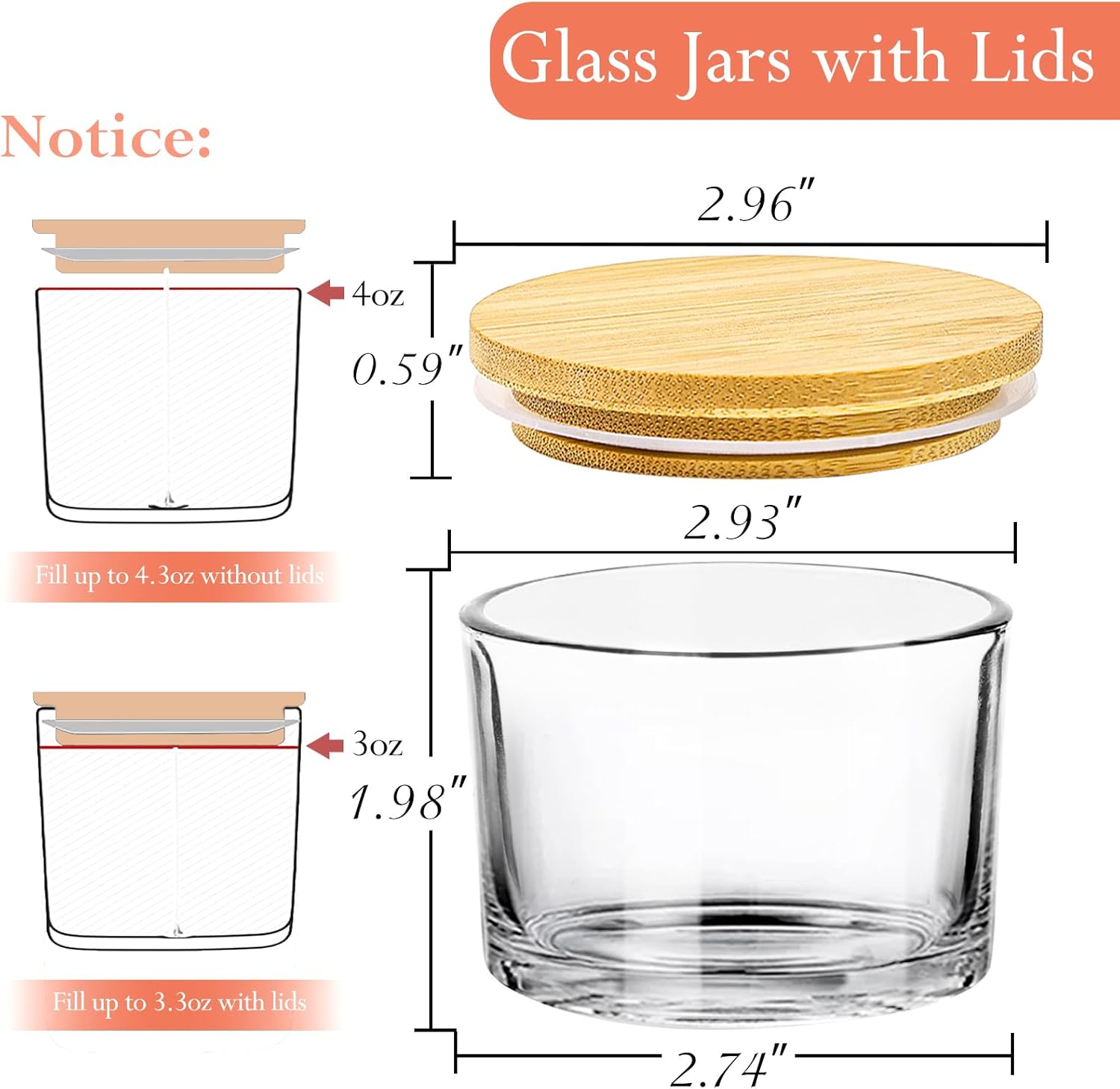 CONNOO 15 Stück 120 ml Klare Glas-Kerzengläser mit luftdichten Bambusdeckeln zum Kerzenmachen, klein