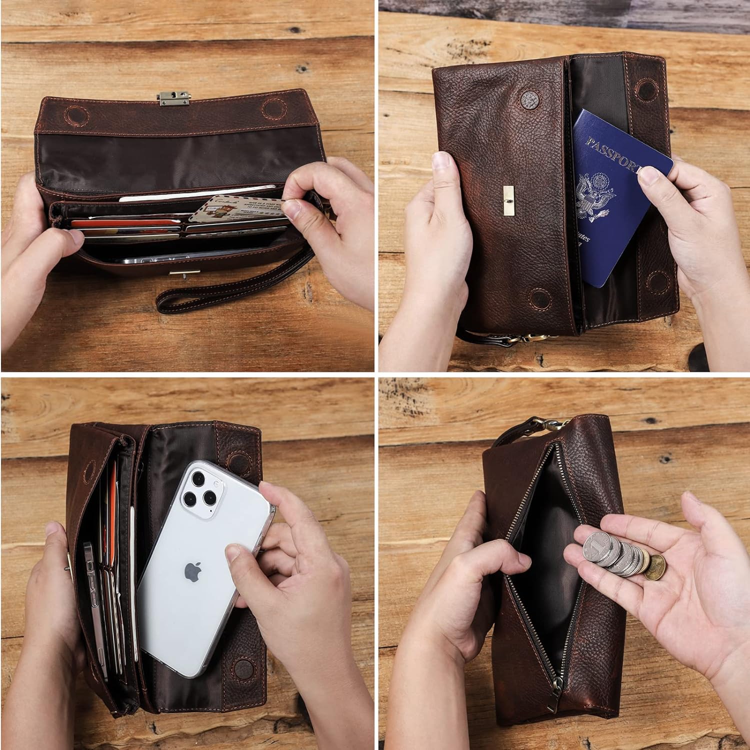 - Die Men Purse-Tasche besteht aus Nubukleder und das Futter aus Polyester. Es kann sowohl für geschäftliche als auch für ungezwungene Anlässe verwendet werden.