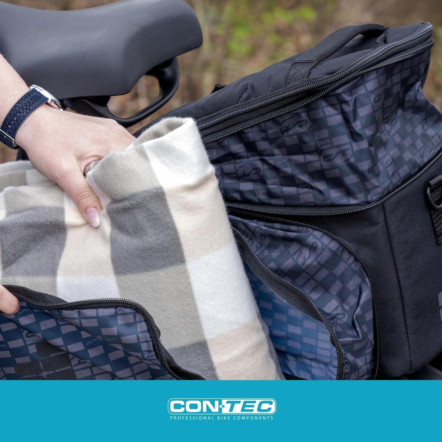 - Fahrrad-Gepäckträgertasche ,,Via.Back AVS' mit vormontiertem AVS-Adapter aus dem Hause Contec.