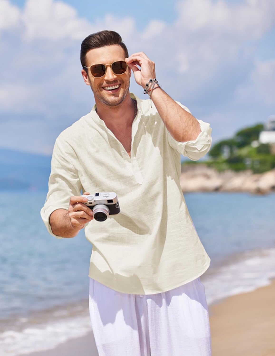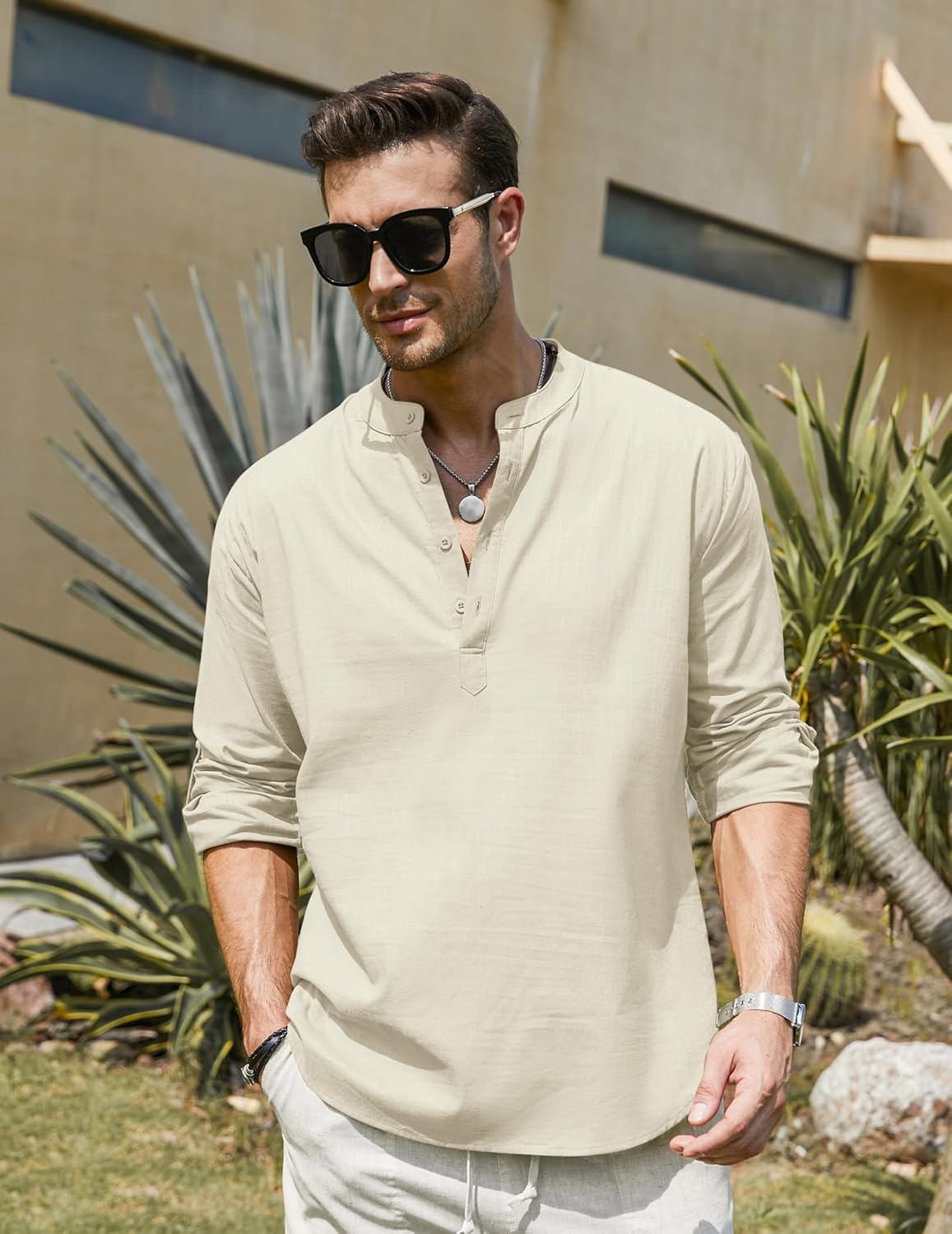 - 【STILVOLLES DESIGN】: Lässige Hemden mit Henley-Ausschnitt, Stehkragen, schlichter Stil, einfarbig, schmale Passform, lange Ärmel (aufrollen), Knopfverschluss, abgerundeter Saum, Knopfdetail.