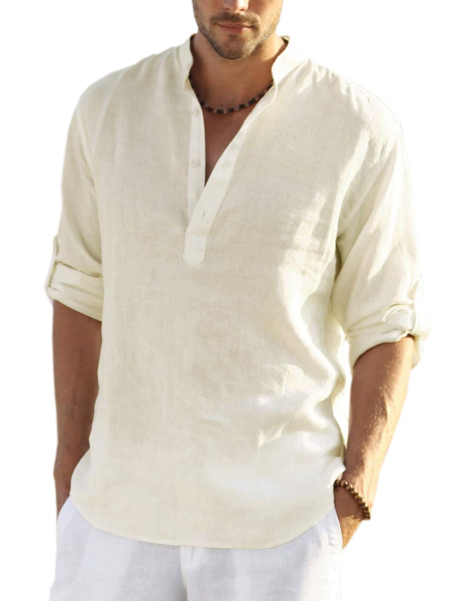 - 【STILVOLLES DESIGN】: Lässige Hemden mit Henley-Ausschnitt, Stehkragen, schlichter Stil, einfarbig, schmale Passform, lange Ärmel (aufrollen), Knopfverschluss, abgerundeter Saum, Knopfdetail.