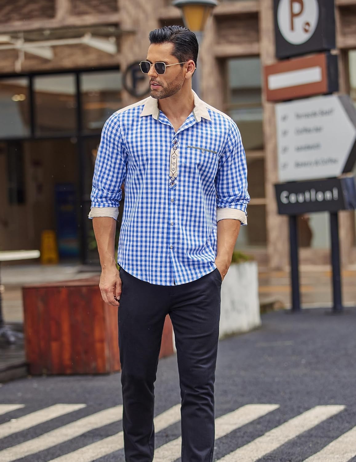 - Das Herren Oktoberfest Hemd hat ein durchdachtes Design. Das Muster und die Stickerei auf der Knopfleiste sind eine Kombination aus Retro und Moderne. Die Kontraste im Kragen und am Ärmelaufschlag machen es zu einem absoluten Hingucker für jeden Anlass