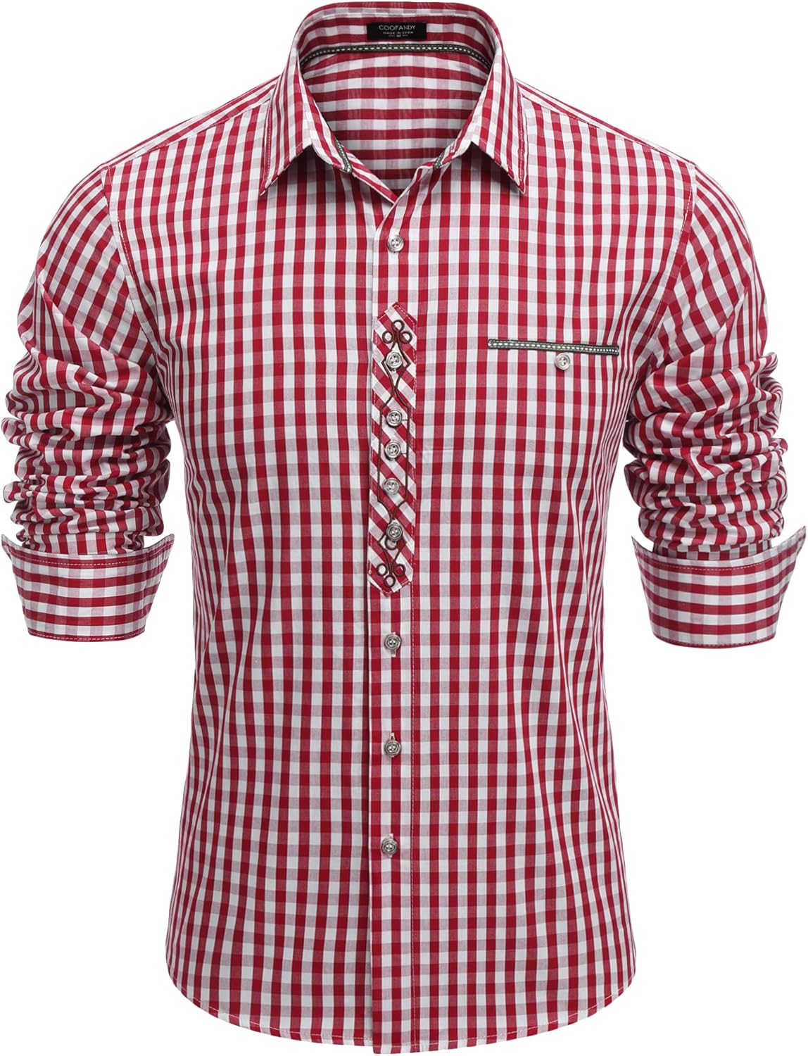COOFANDY Hemd Herren Langarm Trachtenhemd Oktoberfest Kariertes Hemd Freizeithemd Karohemden Herrenh