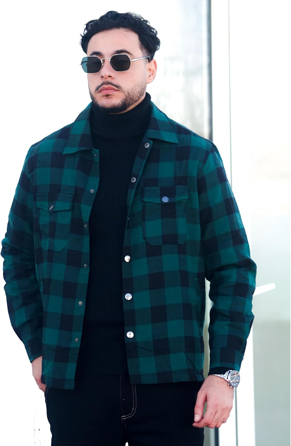- 【Klassisches Design】Dieses karierte Hemdjacke hat einen stilvollen Holzfäller-Look, der Knopfleistenverschluss aus Metall ist klassisch und langlebig, die geknöpfte Brusttasche ist praktisch und praktisch, das weich und dick gefütterte