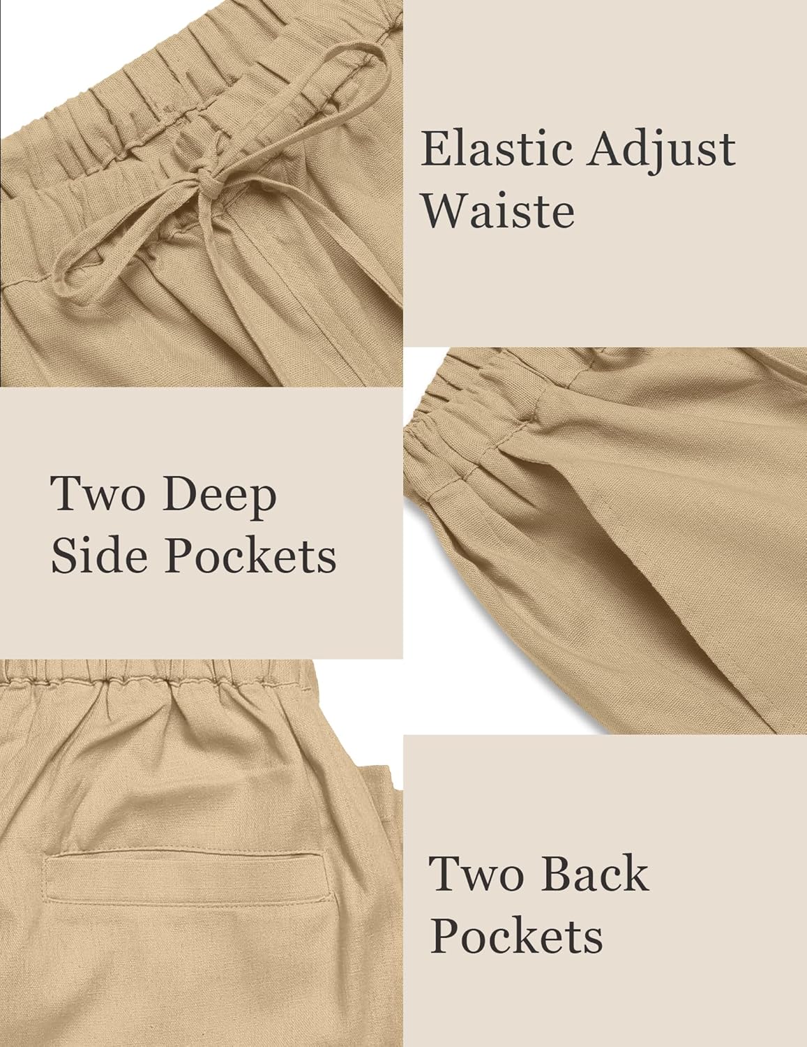 COOFANDY Herren Leinenhose mit Kordelzug Leicht Sommerhose Freizeithose Strandhose Urlaub Einfarbig