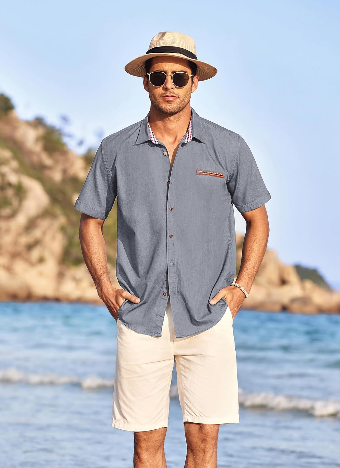 - Sommer Hemden für Herren können in verschiedenen Stilen getragen werden. Können Sie es mit einem Tanktop oder T-Shirt, mit Jeans oder Hosen kombinieren. Geeignet für Alltag, Urlaub, Party und andere Anlässe!