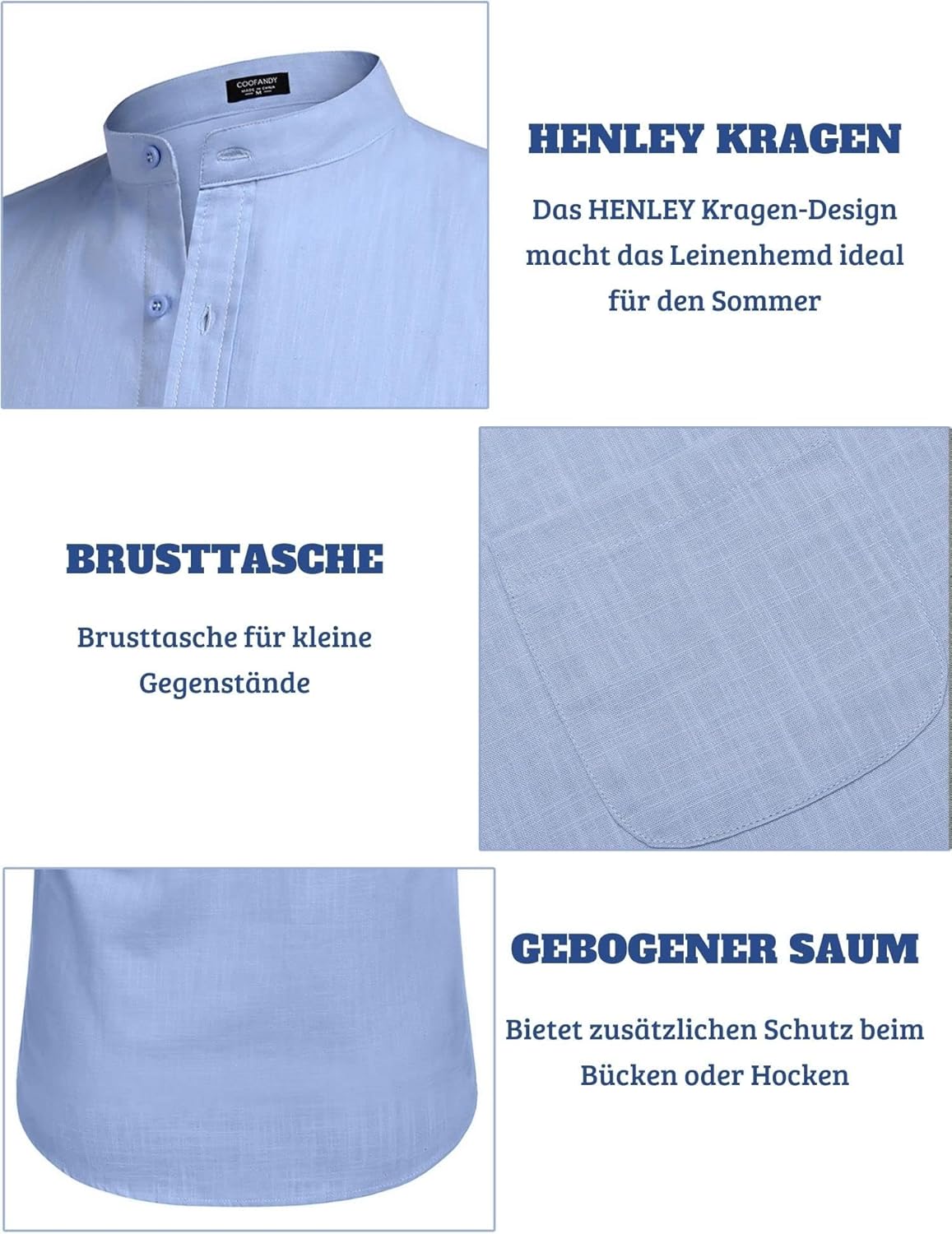 - VIELSEITIG – Das Henley Shirt können problemlos mit Jeans, Hosen oder Shorts getragen werden und sorgen für einen lässigen und dennoch stilvollen Look. Herren Leinen Hemd eignet sich für verschiedene Jahreszeiten wie Frühling, Herbst und Sommer,