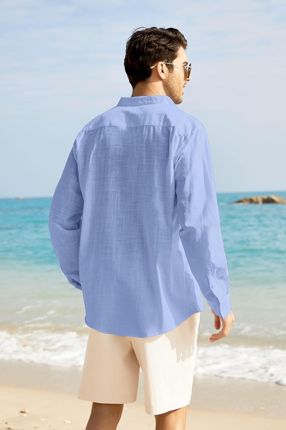 - DESIGN – Das kragenlose Design macht dieses Herren-Langarmshirt sehr sommerlich, cool und lässig. Herrenhemden verfügen ausserdem über verstellbare Manschetten, sodass Sie zwischen langen Ärmeln und halben Ärmeln wählen können. Der geschwungene