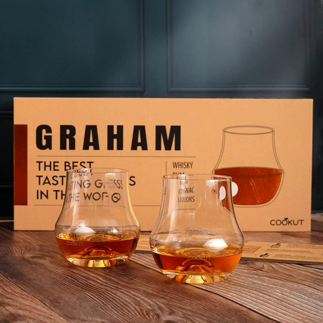 PRODUKTBESCHREIBUNGEN Ein gezeichnetes Glas für den Genuss der Verkostung. Entwickelt, um das beste Trinkerlebnis zu bieten, dank seiner einzigartigen Form und der gekühlten Marmorkugel, kann dieses mundgeblasene Glas den Reichtum und die Komplexität aller Spirituosen zeigen. Die regelmässige Rotation der Marmorkugel um die zentrale Kuppel des Glases bringt die Spirituose in Bewegung, wodurch das Maximum seiner Aromen freigesetzt wird. Enthält: 2 Spirituosengläser, 2 Kühlkugeln aus Marmor, 1 Verkostungsanleitung und eine Kartographie der Spirituosen. Masse: Gläser: Durchmesser 9 x 9,5 cm, Eiswürfel: 2,5 cm, Material: Glas und Marmor Mehr