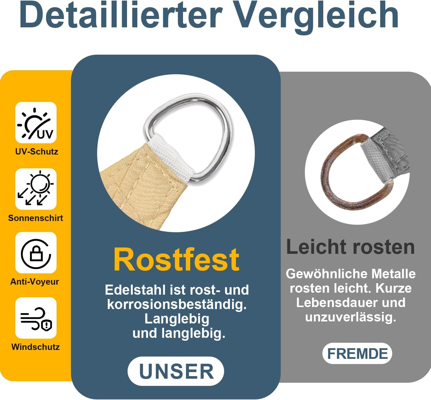 - 〖Hohe Qualität〗: Hergestellt aus 100 % neuem hochdichtem Polyethylengewebe (180 g/m²), mit starken Nähten, kann der Stoff-Sonnenschutz 98 % der UV-Strahlen blockieren und einen angenehmeren Raum schaffen.