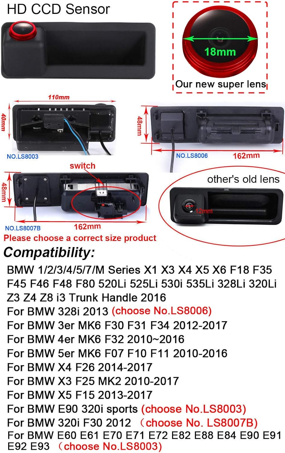 - 🔆【Neue rote 18mm-kamera 】Für BMW 1/2/3/4/5/7/M Series X1 X3 X4 X5 X6 F18 F35 F45 F46 F48 F80 520Li 525Li 530i 535Li 328Li 320Li Z3 Z4 Z8 i3 Kofferraumgriff 2016; BMW 328i 2013 ; BMW 3er MK6 F30 F31 F34 2012-2017; BMW4er MK6 F32 2010-2016; BMW5er
