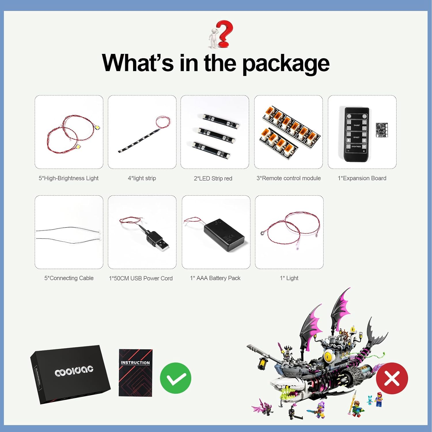- 【Licht Kit für Lego 71469 Set】Das Fernbedienung LED-Beleuchtungsset ist das perfekte zubehör für den Lego 71469 dreamzzz albtraum-haischiff. Kreative Dekorlichter für Lego 71469 Set erhellen die albtraum-haischiff set, Es wird schillernder und